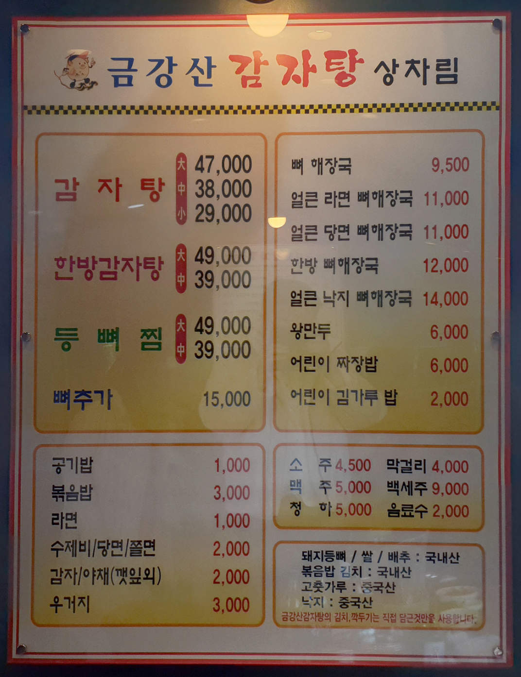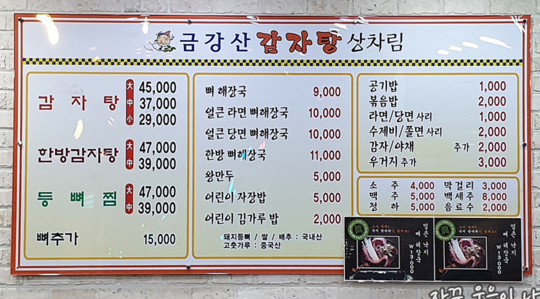 오늘은 금강산 감자탕 메뉴 및 가격, 주차, 영업시간, 휴무일 등 정보소개 합니다.