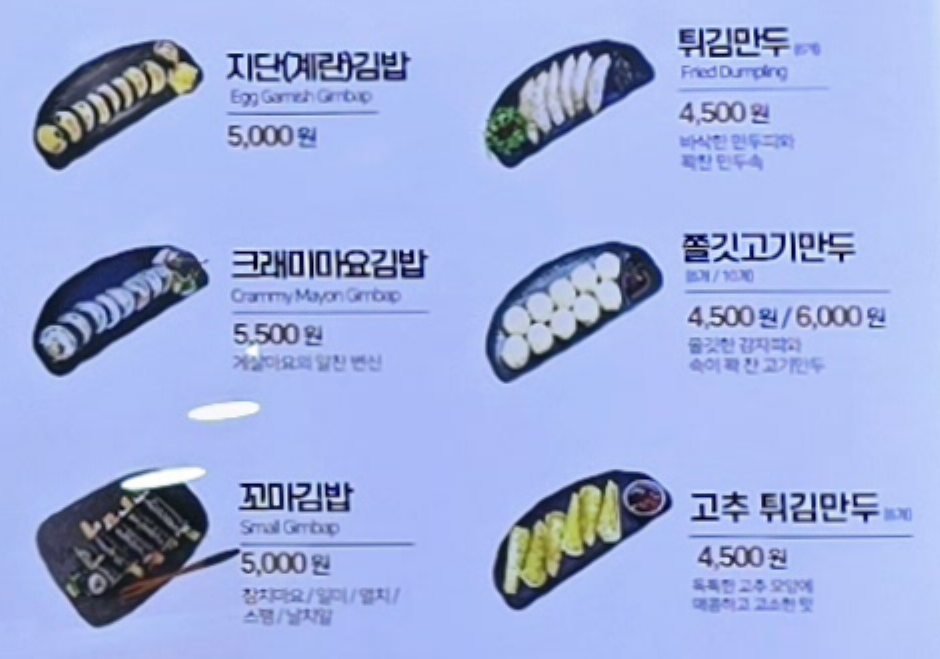분식집 생각하면 라면 김밥 떡볶이 인데, 떡볶이가 낙제 점수이니... 떡볶이 김밥 먹기위해 방문하지는 않을 것 같아요.