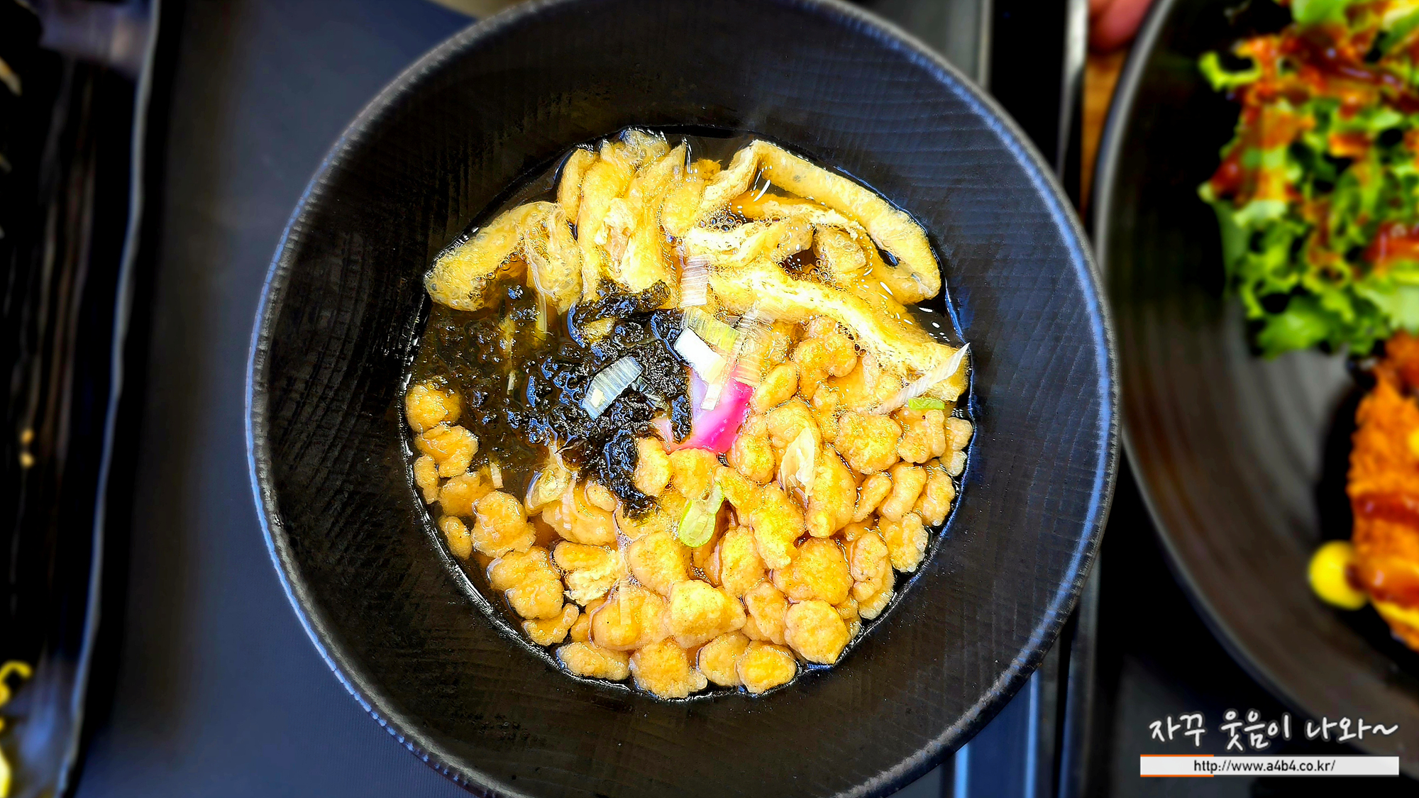 지단김밥 세트에 같이 나오는 맛보기 우동입니다. 세트 가격이 9,000원에 지단김밥 단품 가격이 5,000원이니 사진 속 우동 가격은 4천원 생각하시면 됩니다. 맛은 일반적인 우동 생각하시면 됩니다.