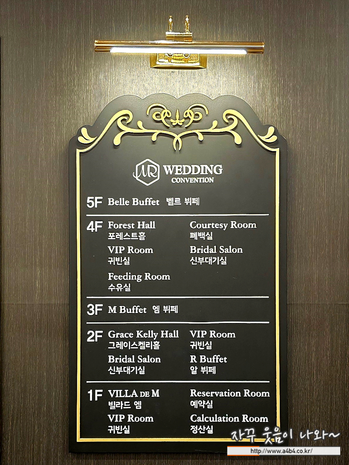 5층 건물로 1층 빌라드 엠, 2층 그레이스켈리홀, 4층 포레스트홀로 구성되어 있습니다. 춘천 미래컨벤션 웨딩홀 뷔페는 2층과 3층에 있는데요. 제가 방문한 날에는 3층 엠 뷔페만 운영하고 있었네요.