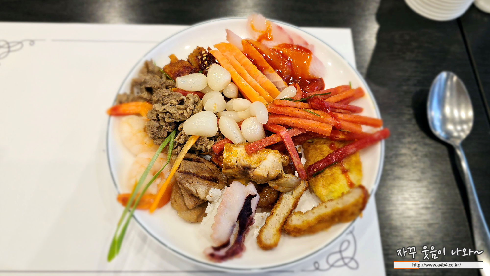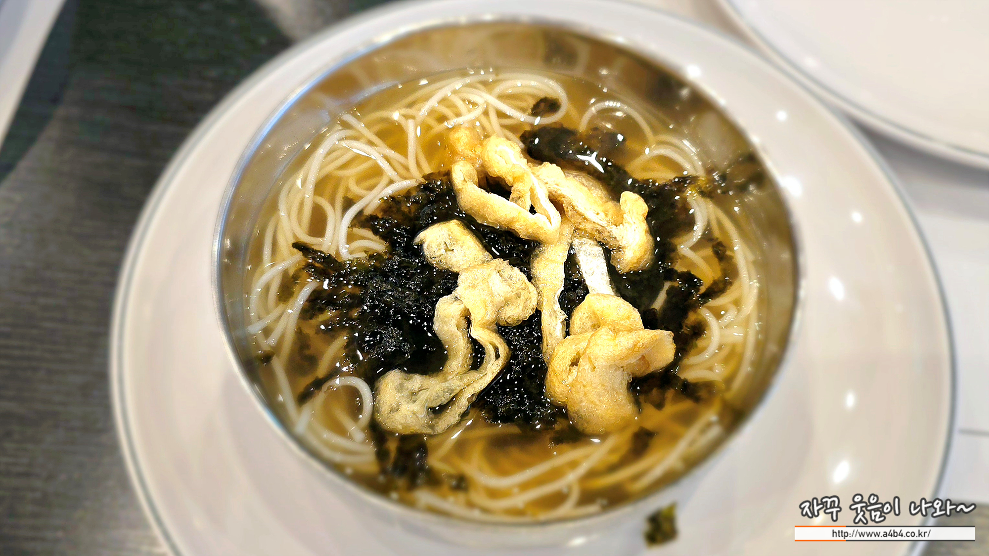 잔치국수 국물 좋습니다. 뷔페요리를 먹다 보면 목이 좀 막히는 부분도 있는데요 따뜻한 국물이 있으니 좋네요.