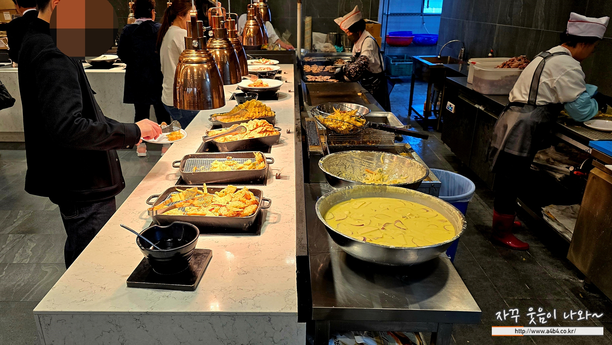 이곳은 뷔페 메인 구역으로 전과 튀김류 고기류가 있었네요. 아이들 좋아하는 돈까스도 있었는데요.