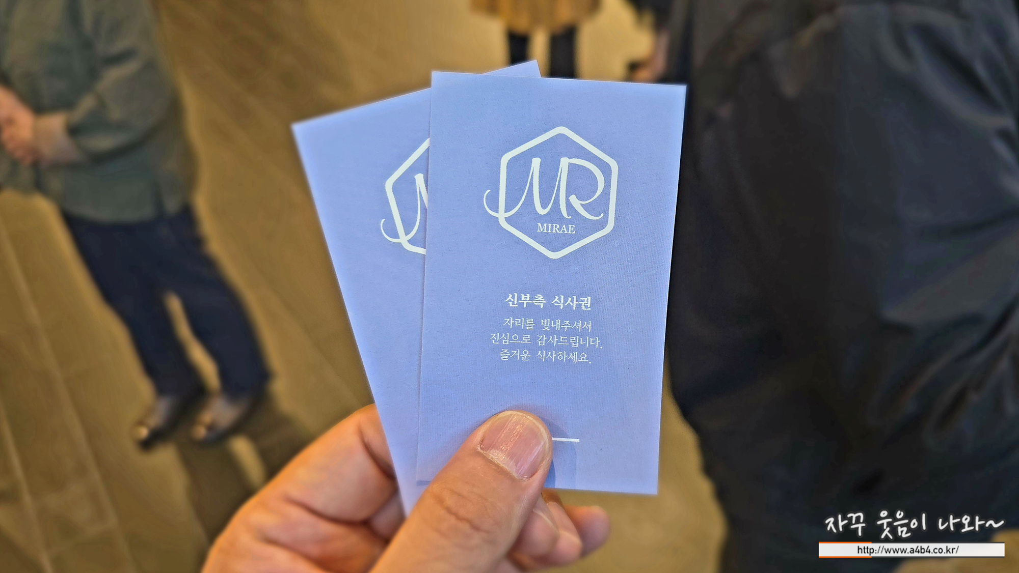 먼저 예식은 2층에서 식사는 3층에서 하게 되었고요. 축의금 내면서 식권 받았습니다.