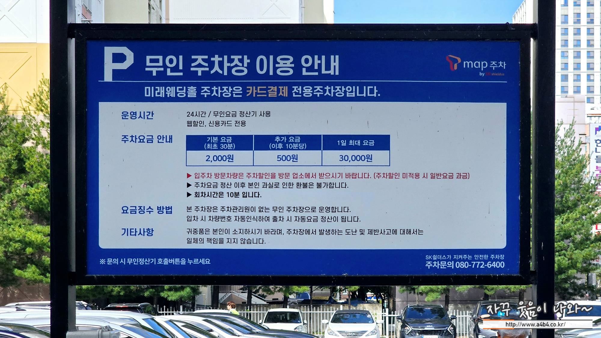 춘천 미래컨벤션 웨딩홀 주차장은 평일에는 유료로 운영되는 것 같은데요. 예식있는 주말에는 별도 주차확인 없이 운영하고 있습니다. 서울 예식장과 다르게 주차시간 제한도 없고 출차시 주차요금 정산도 없습니다.