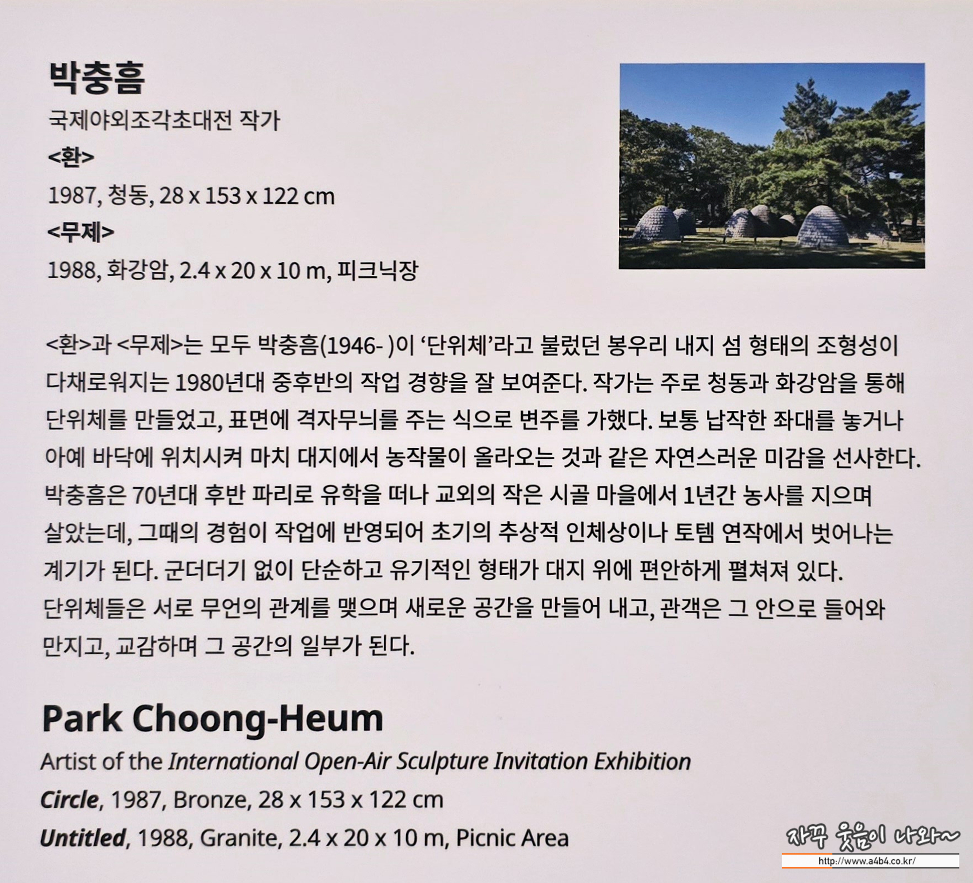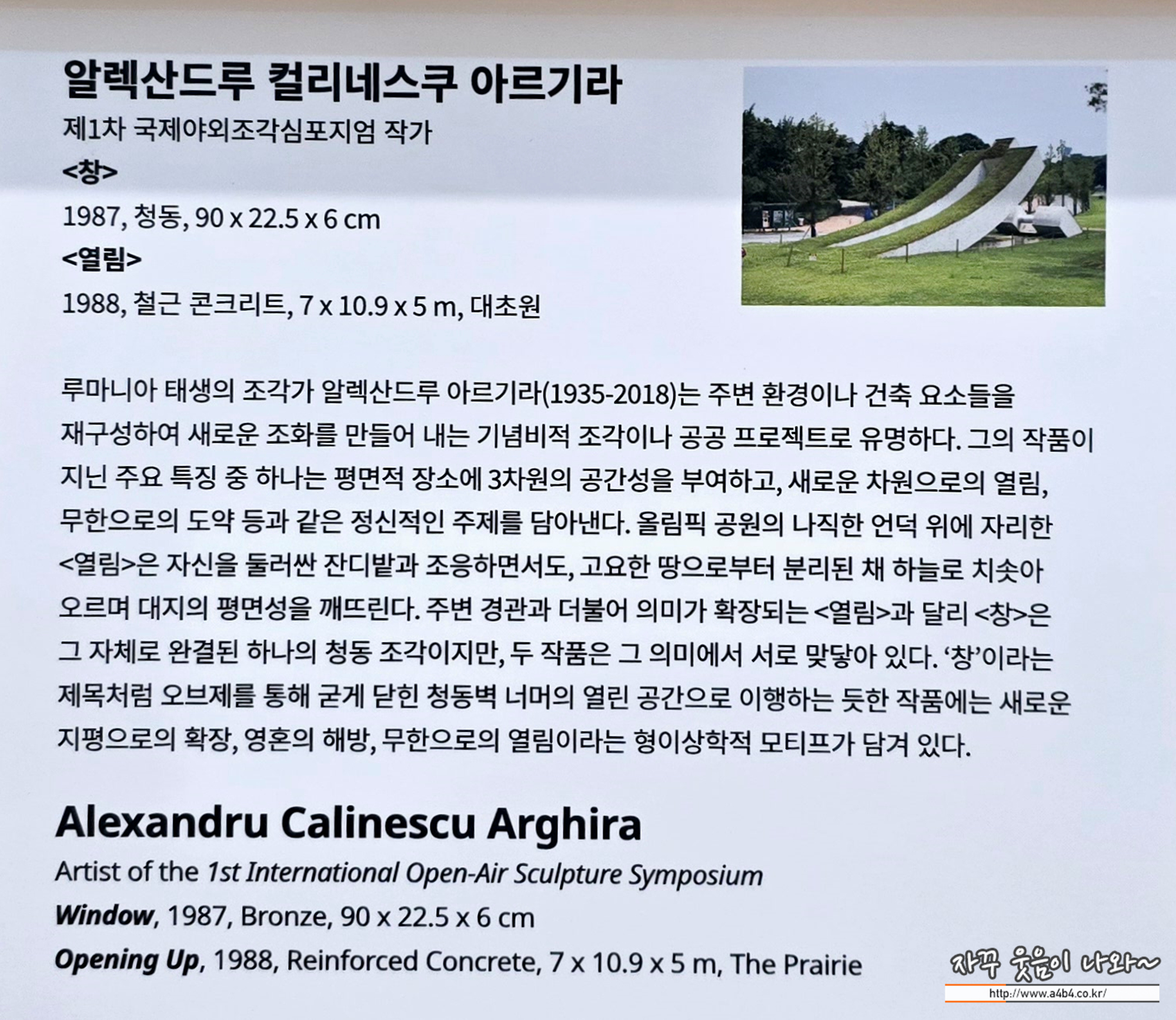 이렇게 올림픽공원에 전시된 작품과 관련된 이야기도 만나볼 수 있습니다.