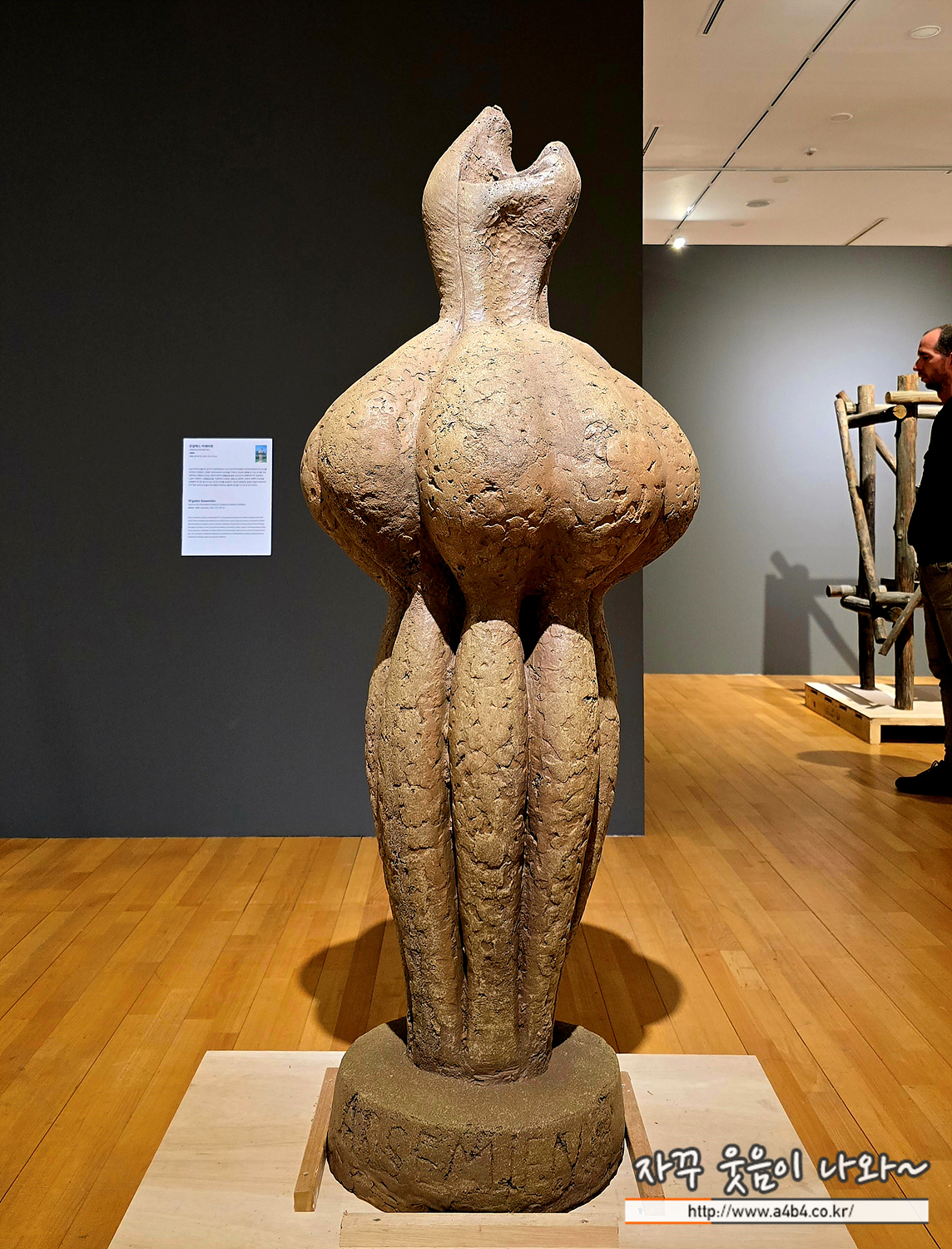 폴란드 바르샤바에서 미술 교육을 받은 마그달레나 아바카노비치(1930-2017)는 제2차 세계대전과 나치의 침공 속에서 자연의 생명력'과 '인간성'을 주제로 한 작업을 발전시켜 나갔다. <안드로진과 바퀴>는 나무로 짠 수레 안에 몸통 조각을 실어 놓은 작품이다. 조각난 신체는 '안드로진(andro-gyne)'이라는 이름처럼 몰개성화된, 중성화된 인간의 형상을 통해 전쟁의 참혹함과 생명의 존엄성을 역설적으로 표현한다. 야외 공원의 <용의 공간> 역시 멀리서 보면 모두 유사한 동물의 머리처럼 보이지만, 그 사이사이를 걸으며 유심히 살핀다면 그것이 모두 다른, 미묘한 차이를 지닌 개별 생명체임을 알 수 있다. 작가는 이를 통해 '차이를 반복'하여 생산하는 자연의 신비한 힘을 표현한다.