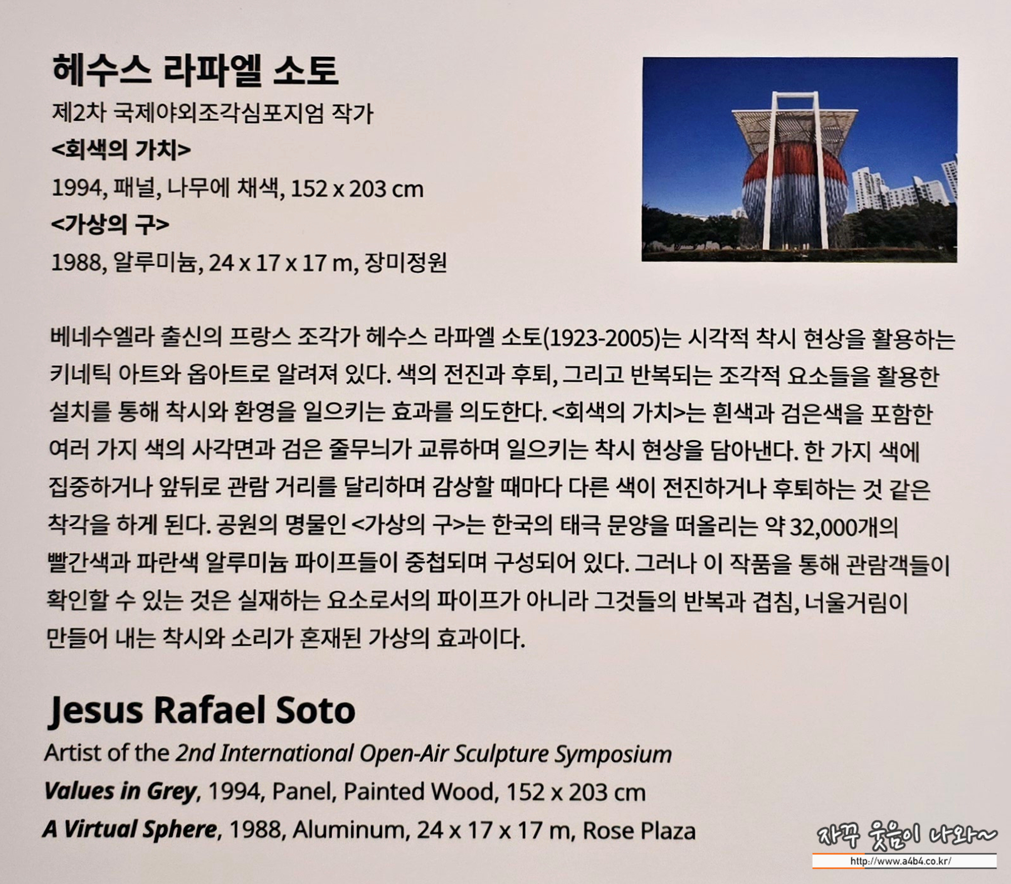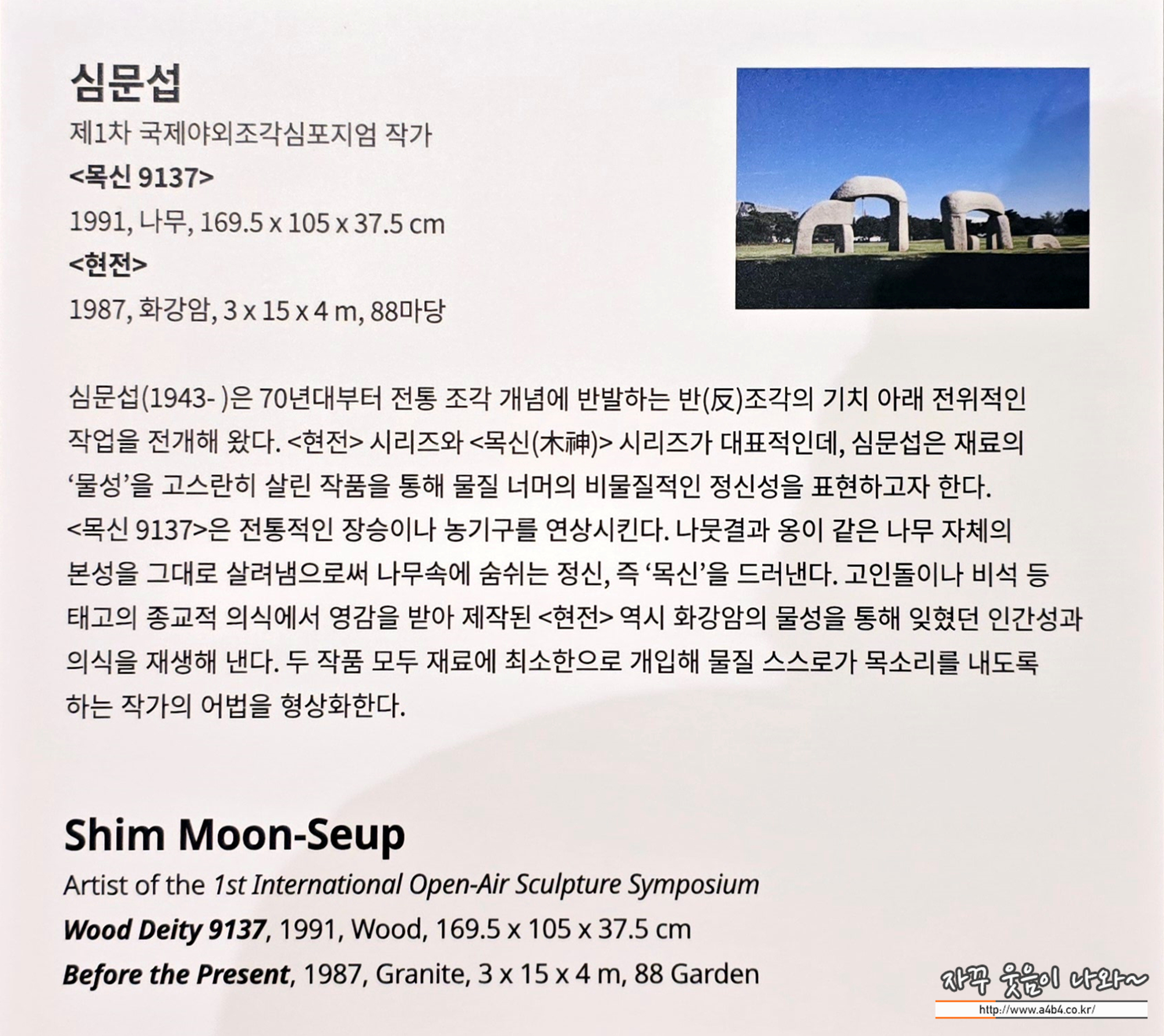 아마도 이번 전시회에 소개되는 일부 작품은 올림픽공원 야외에 전시된 작품들을 실내로 이동해서 전시하고 있는 것 같습니다.