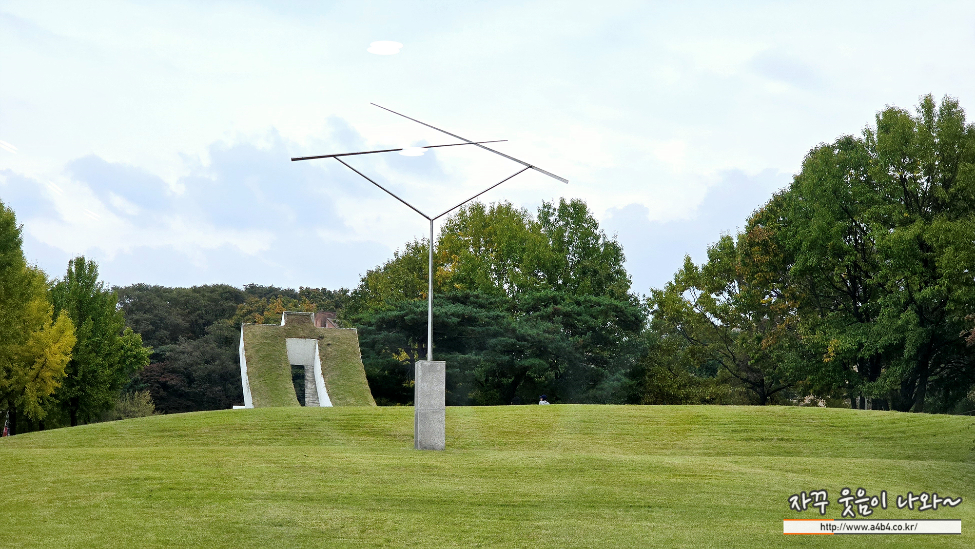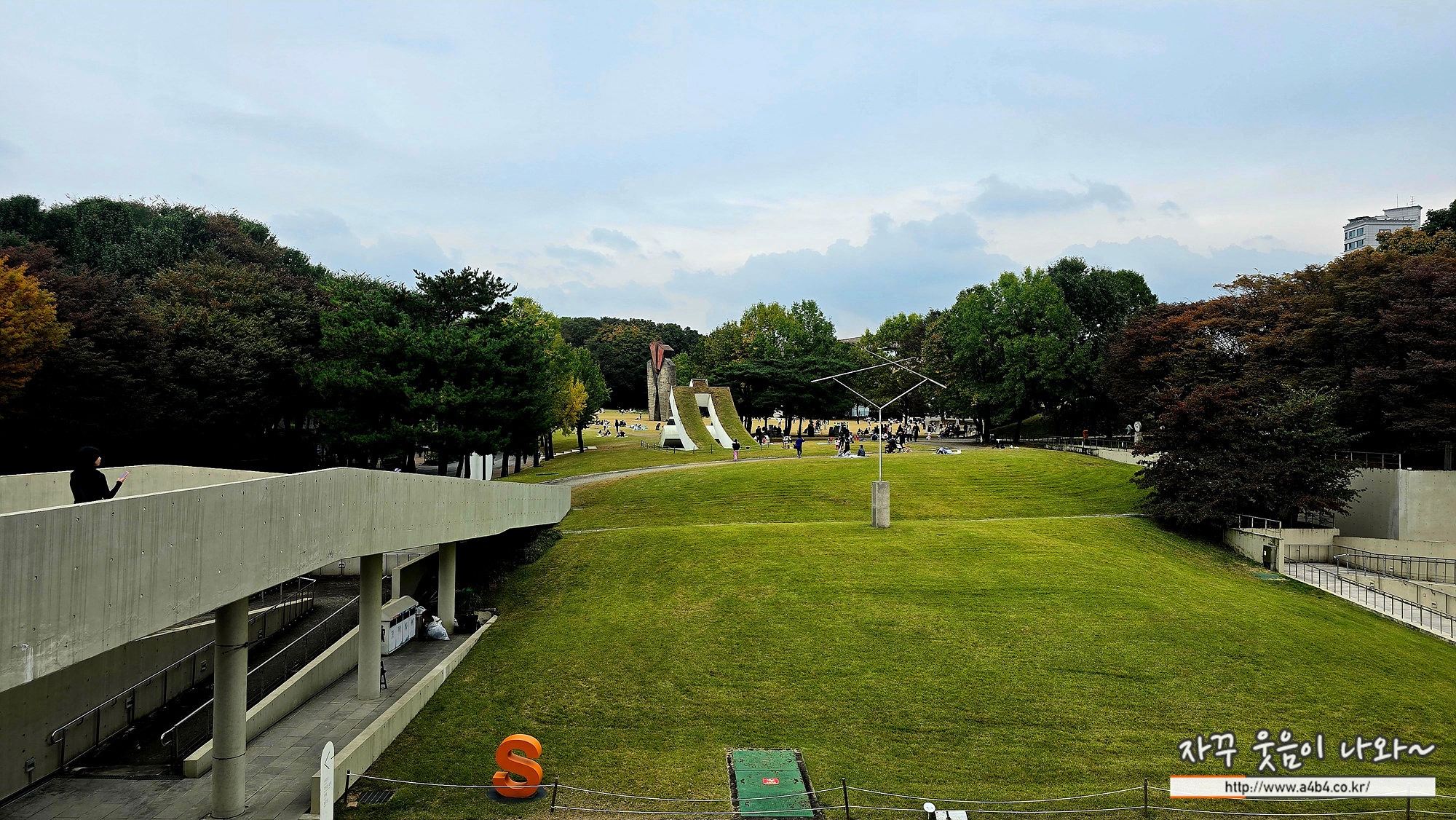 해당 작품은 소마미술관옆 잔디공원에 위치해 조각 근처에서 많은 사람들이 휴식을 취하거나 뛰어놀기도 합니다. 미술관 창에서 바라보는 작품도 새로운 느낌을 주네요.