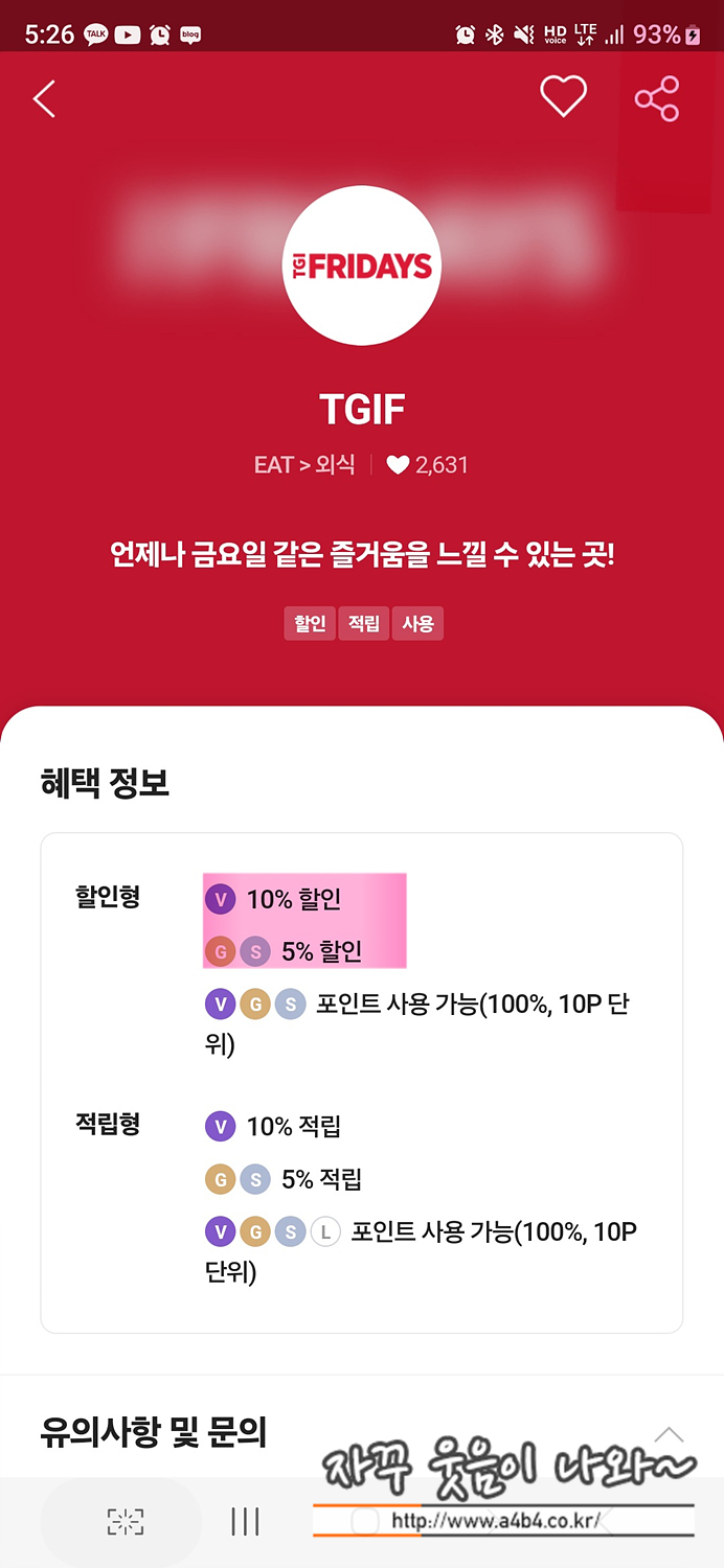 | TGIF 신용카드 할인
