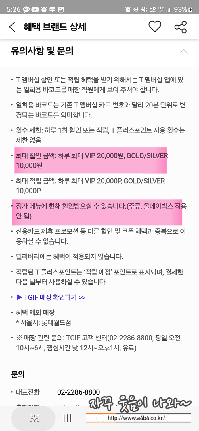 TGIF 할인카드, 쿠폰, SKT 통신사 할인 (TGI프라이데이스)