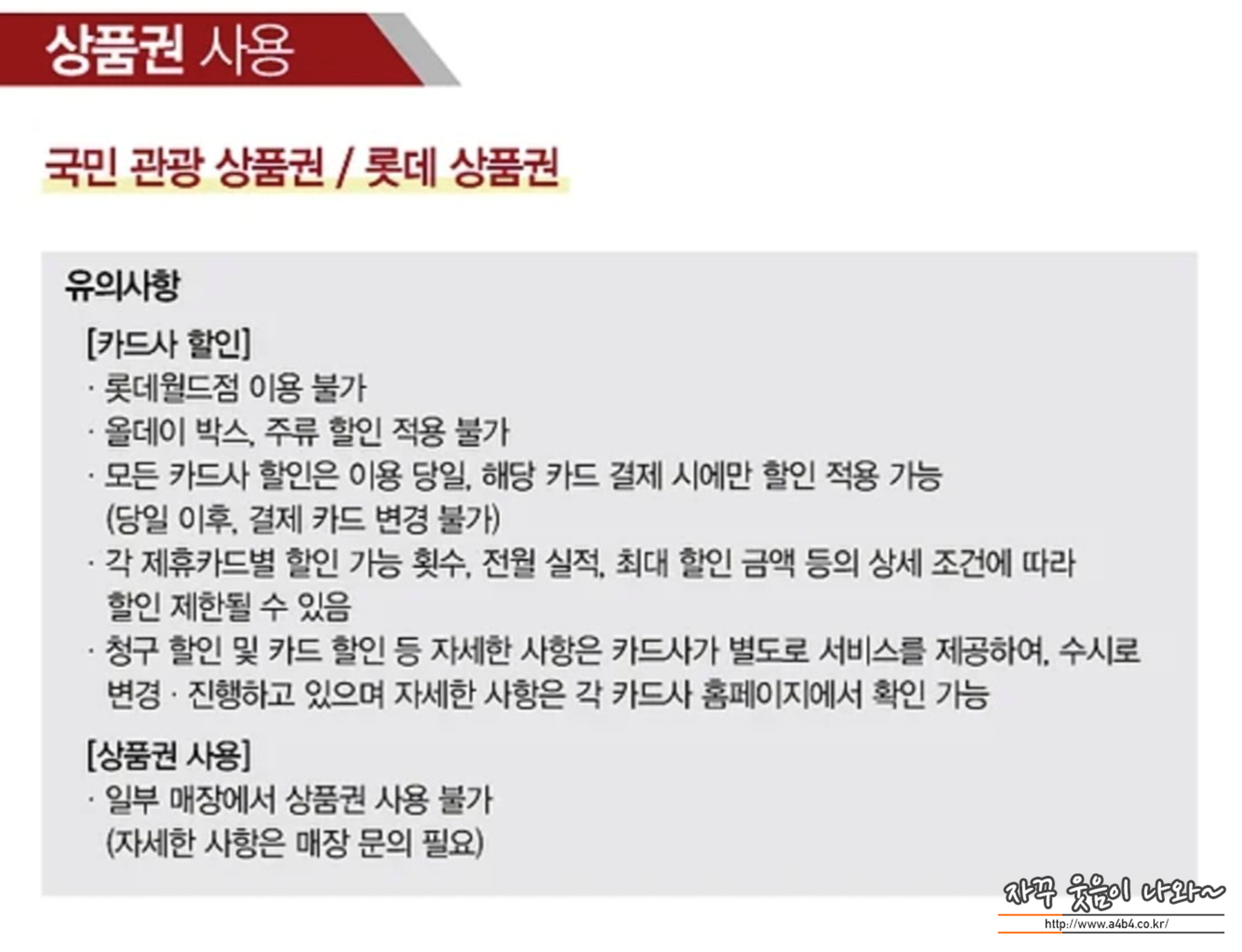 국만관광 상품권와 롯데상품권 TGIF 사용가능 합니다.