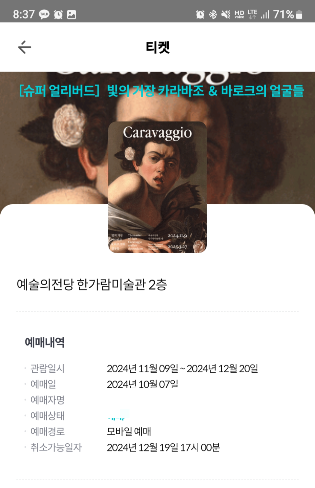 전시회 티켓 가격은 성인 기준 22,000원 입니다. 저는 10월 초 슈퍼얼리버드 + KT 맴버쉽을 통해 55% 할인된 9,900원에 빛의 거장 카라바조 & 바로크의 얼굴들 전시회 티켓예매 했습니다. 현재는 얼리버드 종료
