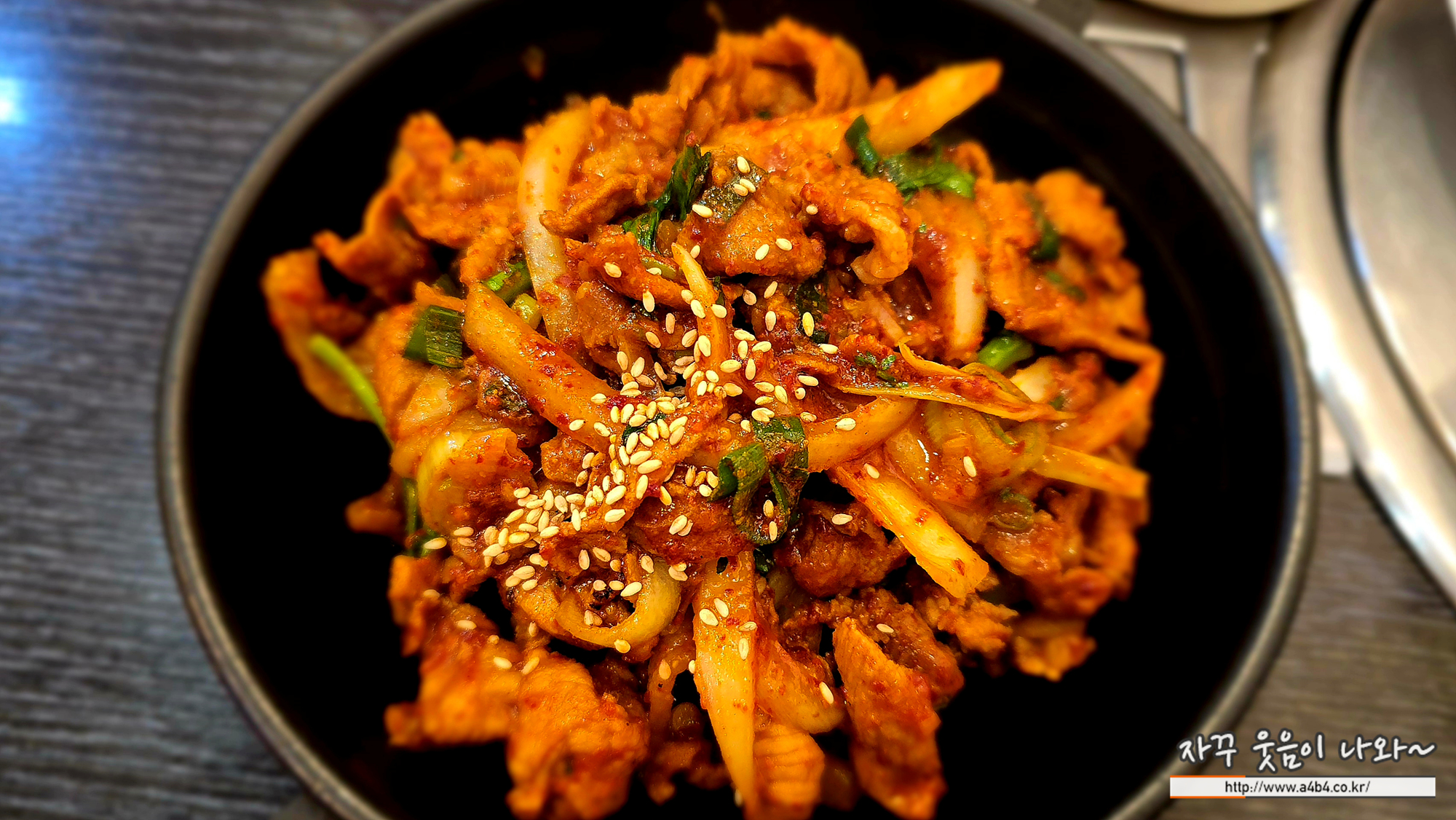 석촌역 어소반 제육볶음은 쏘쏘합니다. 맵기는 보통수준에 고기는 다소 씹는 맛이 좀 덜 한 식감을 보여주네요. (이 부분은 개인차에 따라 호불호가 나뉠 것 같네요)