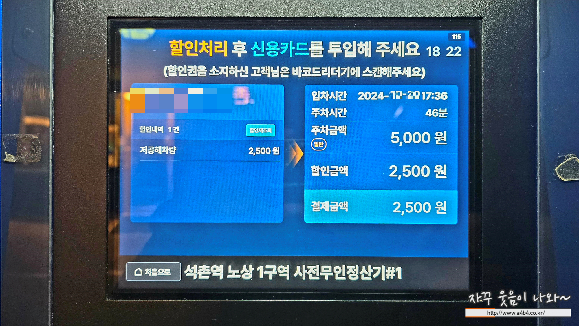 저는 주차하고 근처 마트에서 반찬 좀 구입하고 오니 46분 주차 했는데요. 하이브리드 차량 할인 받아 2,500원 주차요금이 부과 되었습니다. 안전하게 주차하니 정신 건강에 좋네요.