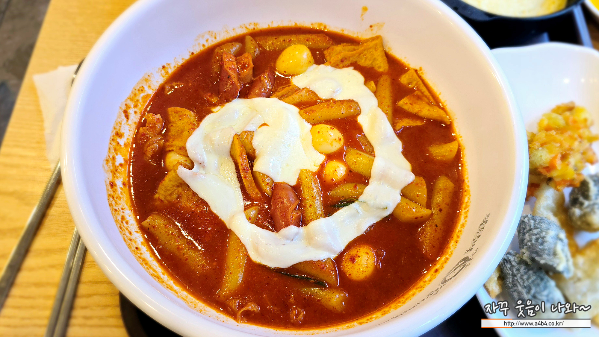 엽떡의 시그니처 같은 떡볶이 위에 올려진 치즈와 함께...