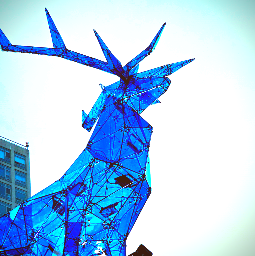 먼저 건물 맨 위에 보이는 푸른색 거대한 사슴 한 마리가 보입니다. 작품 제목은 ' Quadruped (네발짐승)'