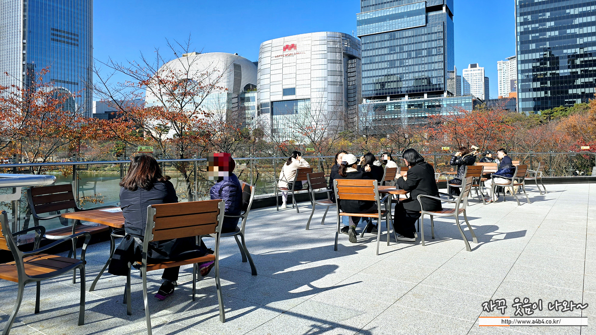이곳에서는 테이블에서 앉아 휴식을 취하면서 석촌호수 풍경 감상이 가능합니다. 다만 테이블에서 음료와 음식 섭취는 할 수 없네요. 아쉽지만 봄이나 가을에는 이곳에 앉아만 있어도 정말 좋을 듯...