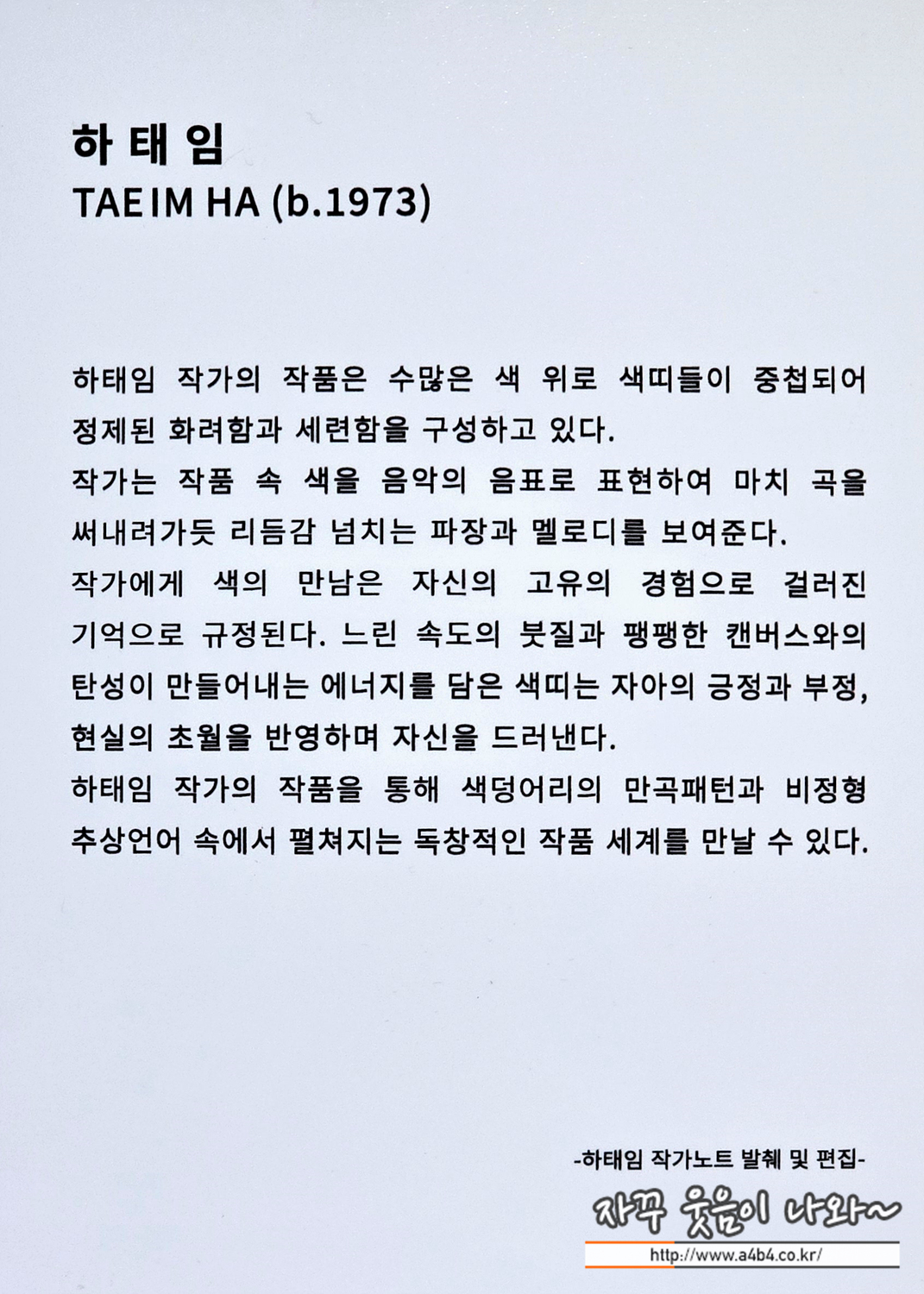 서양화가 하태임 작가의 전시회가 강남구 대치동 포스코미술관에서 '강박적 아름다움에 관하여' 라는 제목으로 열리고 있습니다. 저는 작년말 롯데월드몰에 있는 에비뉴엘아트홀에서 작가의