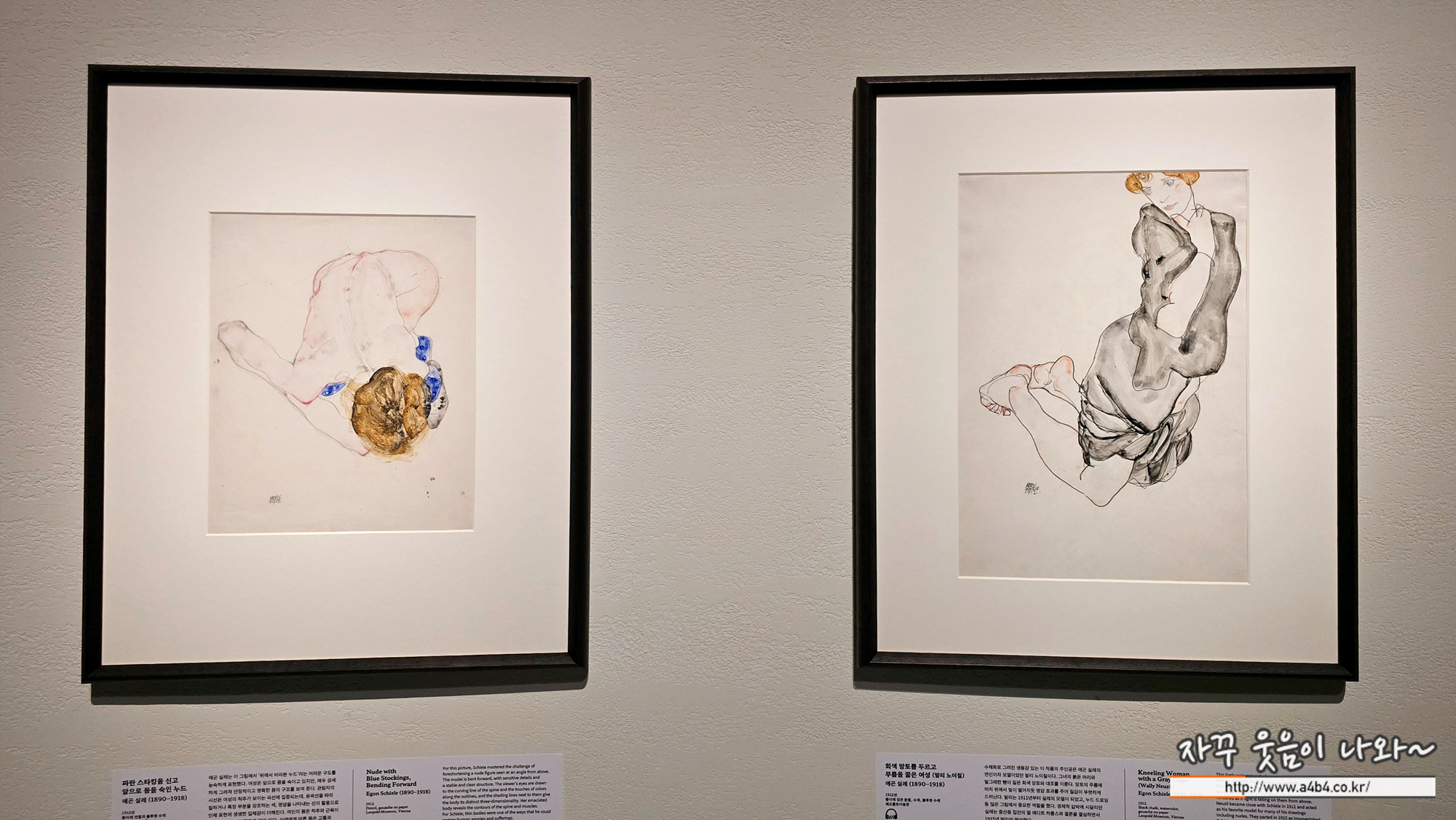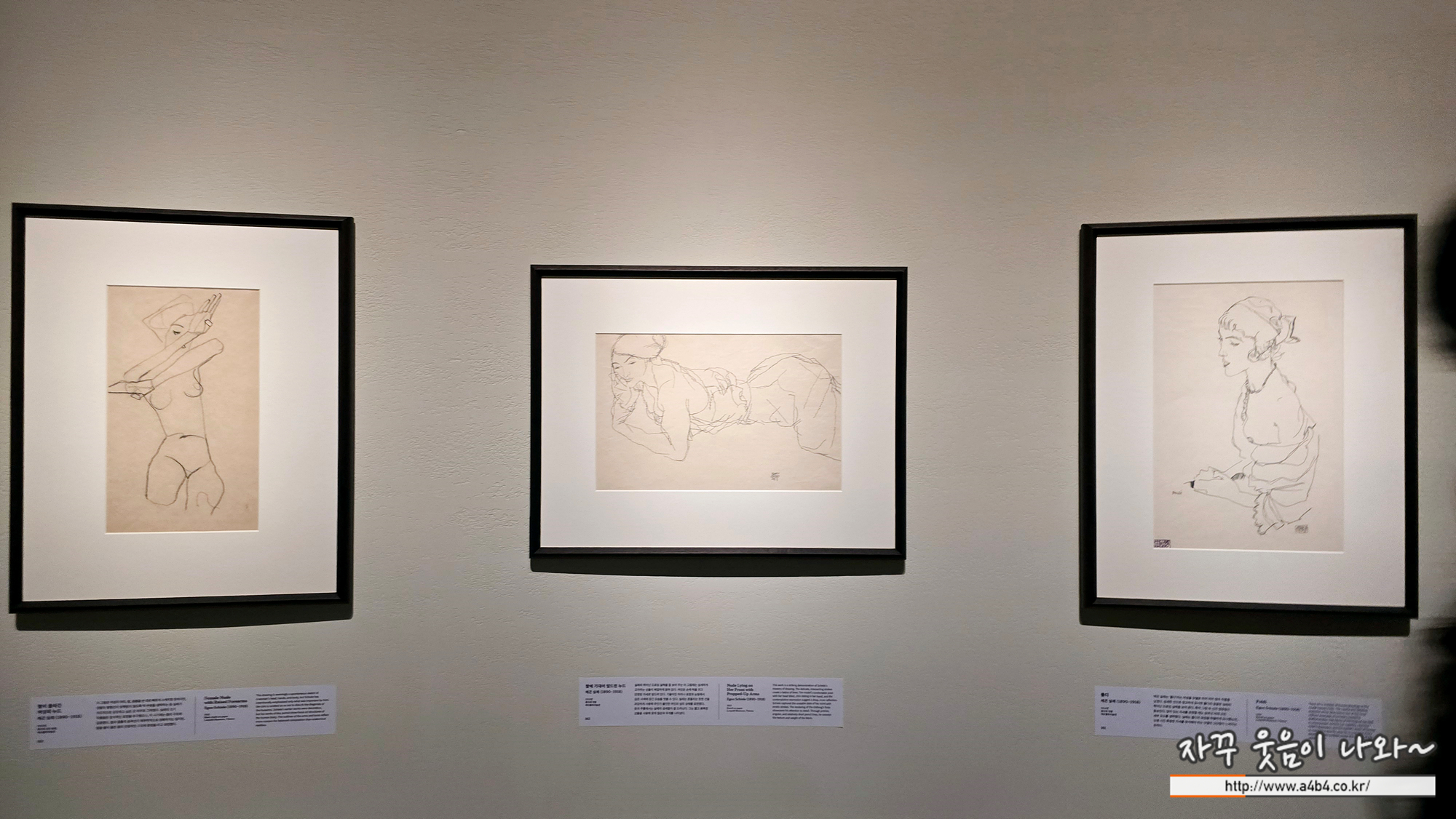 클림트의 누드 스케치를 감상했다면, 반대편 공간은 에곤 실레의 작품을 감상할 수 있다. 같은 듯 전혀 다른...
