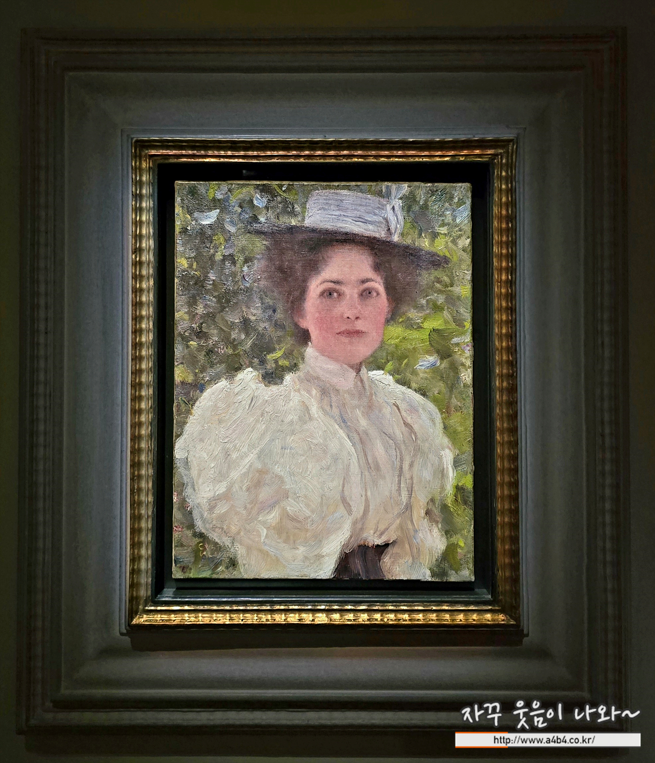 구스타프 클림트는 당시 유럽에서 유행하던 예술을 오스트리아에 소개하는 데 중요한 역할을 했습니다. 이과정에서 프랑스의 인상주의와 같은 화풍이 오스트리아 예술가들에게 큰 영향을 미쳤습니다. 클림트도 초기에는 전통적인 화풍으로 그렸지만, 점점 인물화에서 여러 가지 구도나 표현법을 실험했습니다. 1890년대 후반에는비엔나 중.상류층 여성들의 초상화가로 자리 잡으면서, 이 작품처럼 완성도 높은 인상주의 화풍의 인물화틀 그렸습니다.
