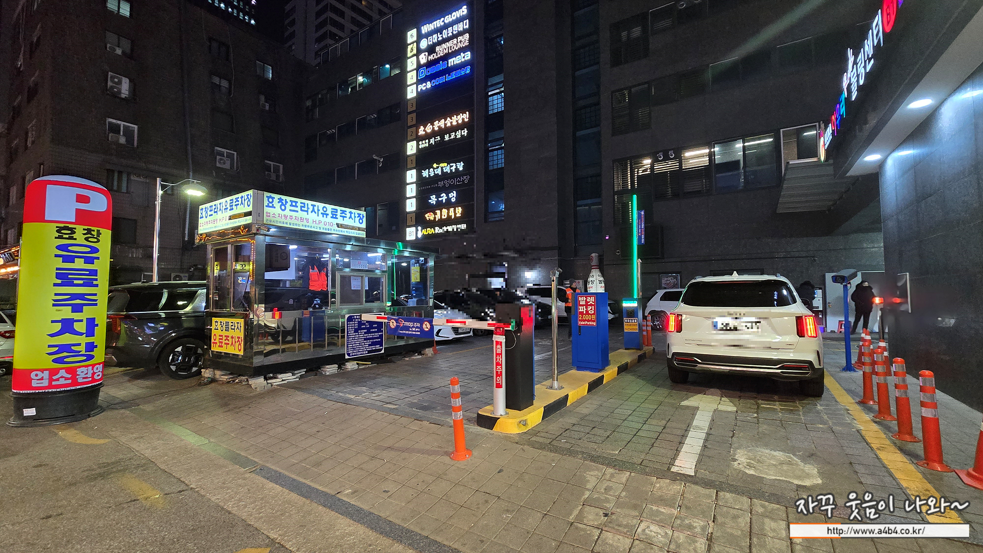 주차장은 발렛을 이용해야 해서 입차시 2,000원 지불해야 하고요. 주차요금은 30분당 2,000원 부과됩니다. 만약 한 시간 1분 이용해도 6,000원 주차요금 부과됩니다.