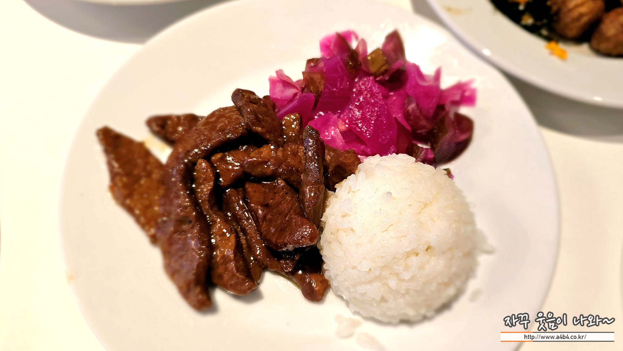 숯불갈비 소스로 양념한 식물성 숯불갈비와 삼색 야채 피클이 나오는 메인 요리 중 하나입니다. 현재는 프로모션으로 8,900원에 만나볼 수 있는데요. 갈비는 부드럽고 맛있는데, 엄청나게 달달 합니다. 달달달...