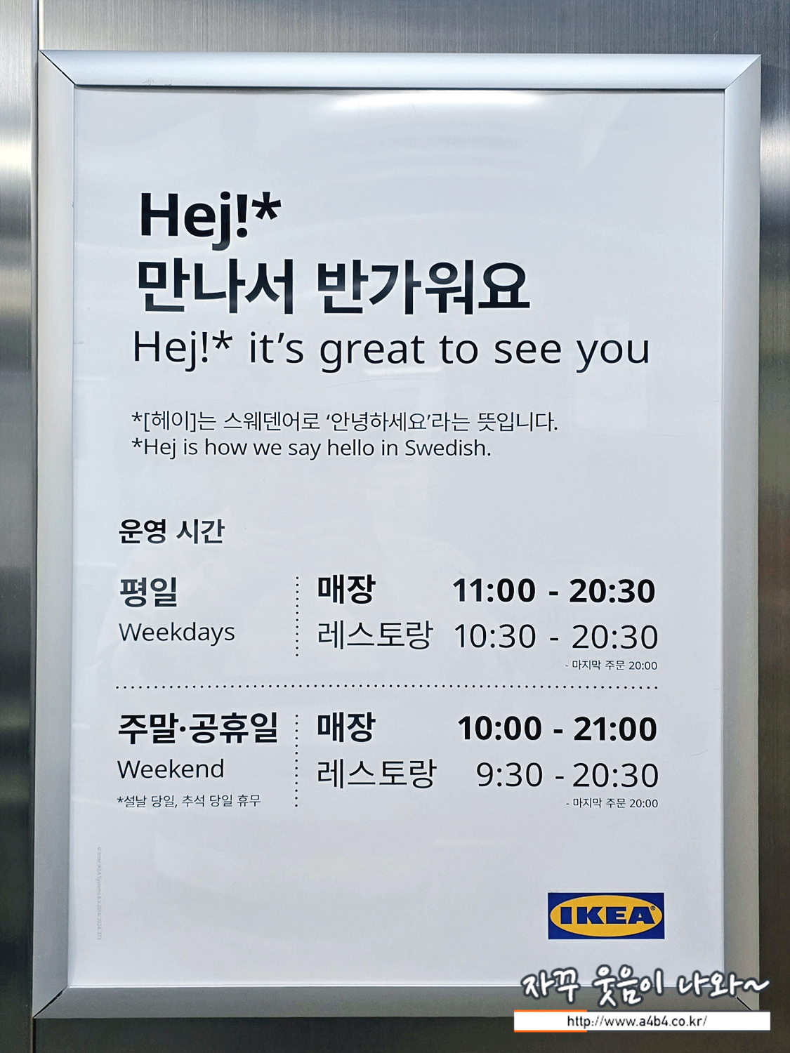 | 이케아 광명점 휴무일 및 영업시간