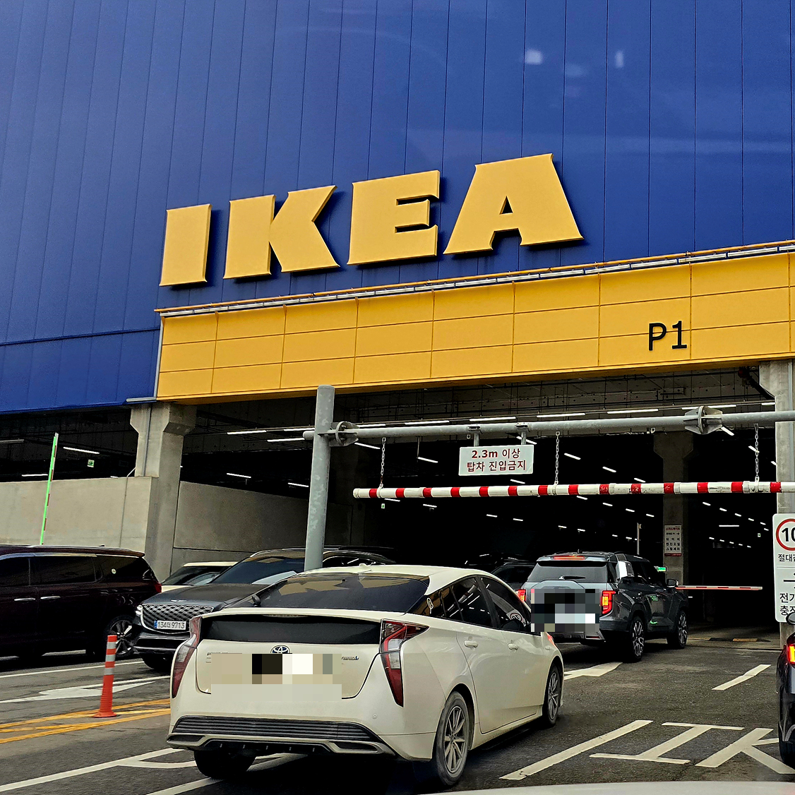 이케아 광명점 주차장은 P1 부터 P3 까지 3개층을 사용하고 있습니다. 접근성은 P2 출입구가 가장 좋고요. 지상동 매장 출입구와 전기차 충전소가 있습니다만 어차피 1층에서 구매한 물품 결제하고 엘리베이터를 이용해서 이케아 광명점 주차장 이동해야 하니 층별로 큰 차이는 없습니다.
