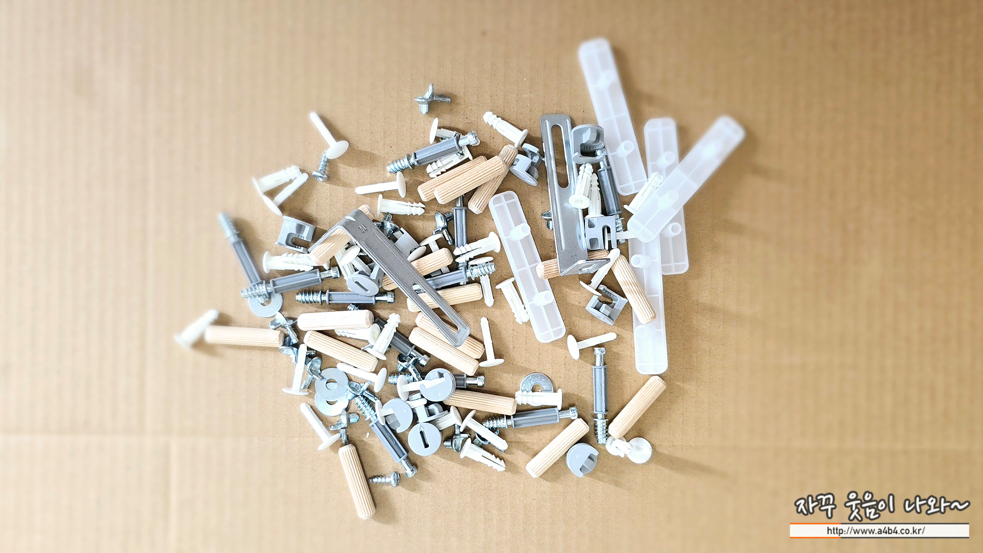 부품 구성은 간단합니다. 나사 몇개와 10개 내외의 판이 전부네요. 다만 50kg 하중을 버틸수 있는 나무이다 보니 무게가 상당합니다. 조립 자체는 기존 이케아 가구를 조립해보신 분이라면 한 시간 이내에 개봉부터 정리까지 가능합니다.