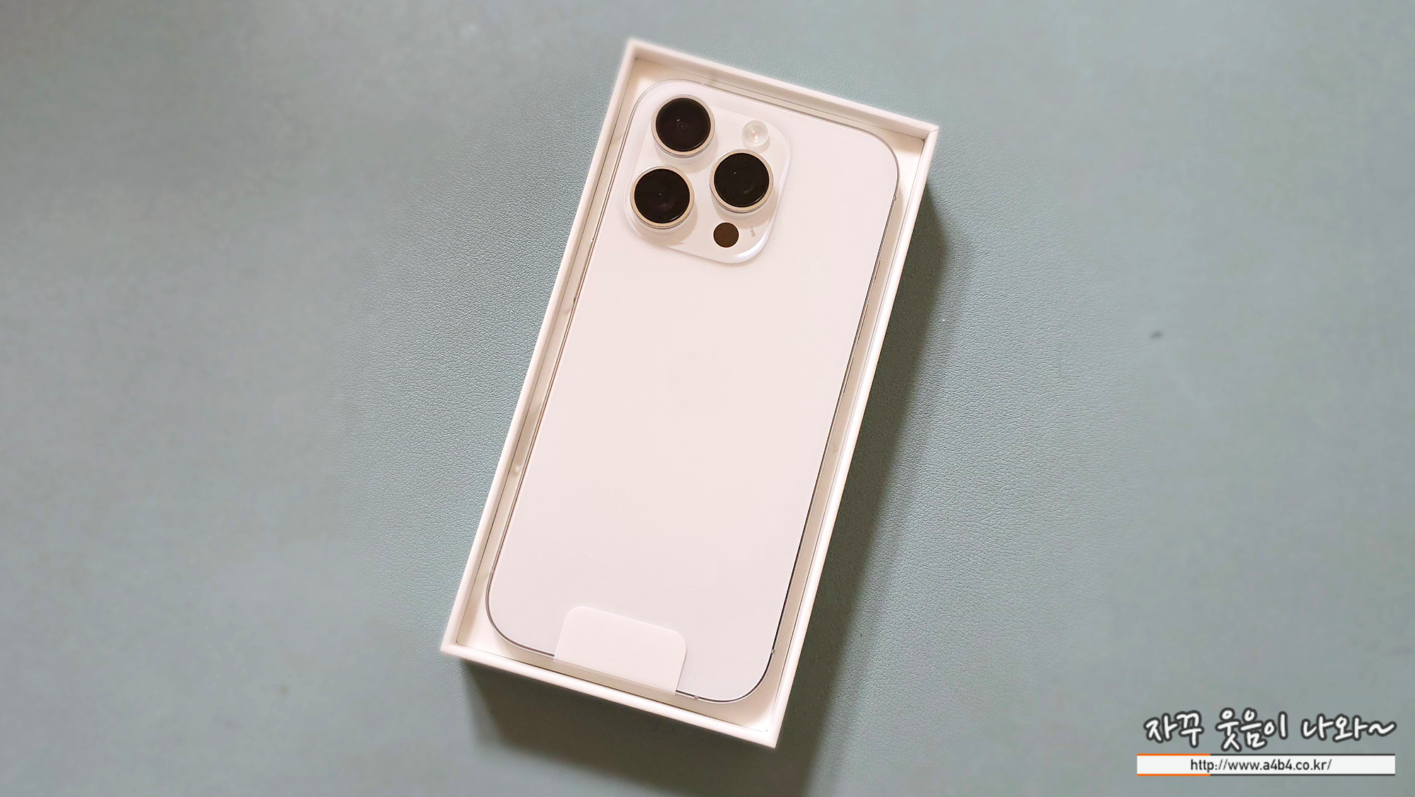 딸아이가 구입한 아이폰은 아이폰 16 프로 화이트 티타늄 모델입니다. 꼭 카메가 부분이 인덕션 이어야 한다는 고집