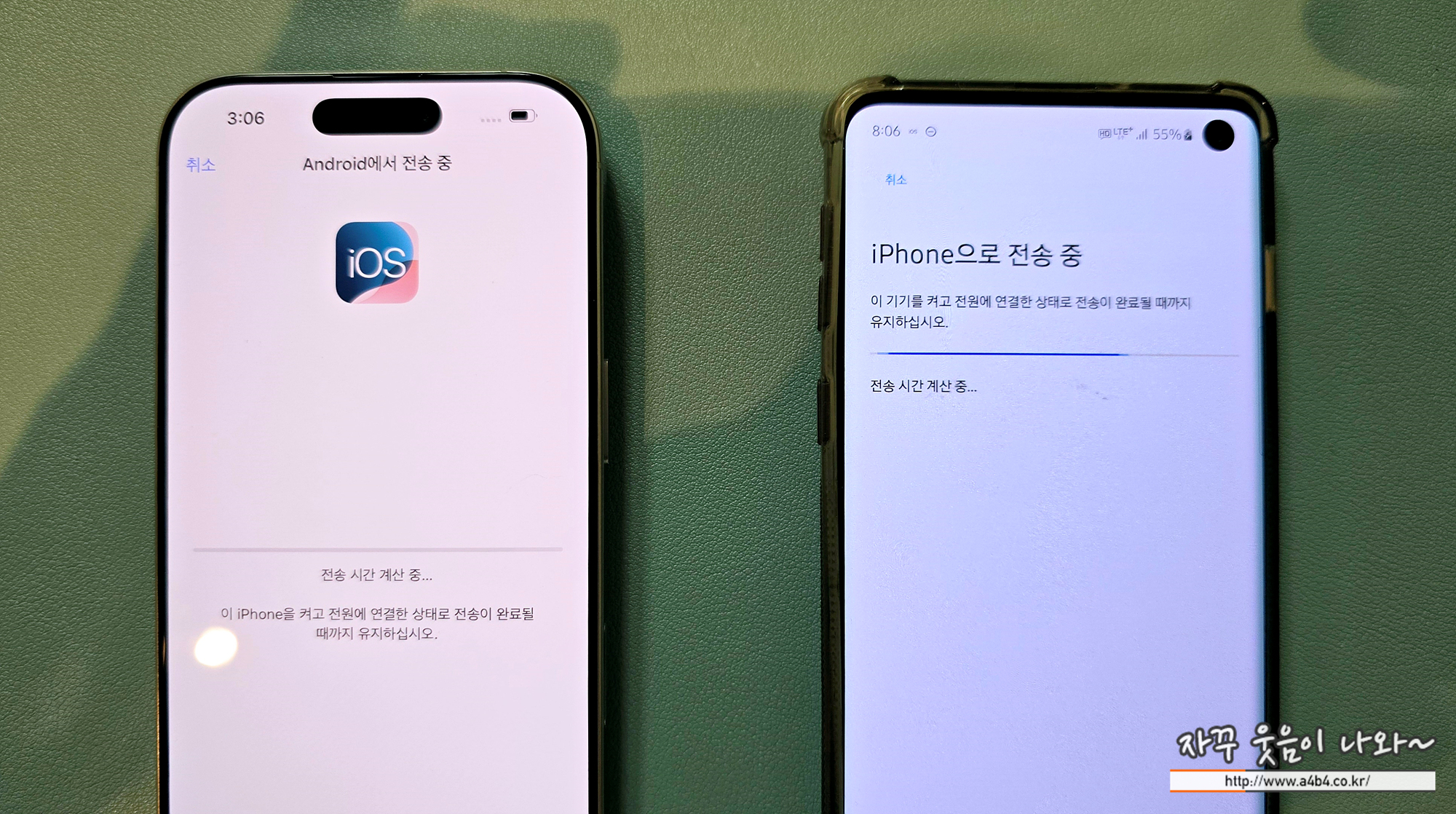 오늘은 새로 구입한 아이폰 16 프로 스마트폰으로 갤럭시 S10 데이터를 이동하도록 하겠습니다.