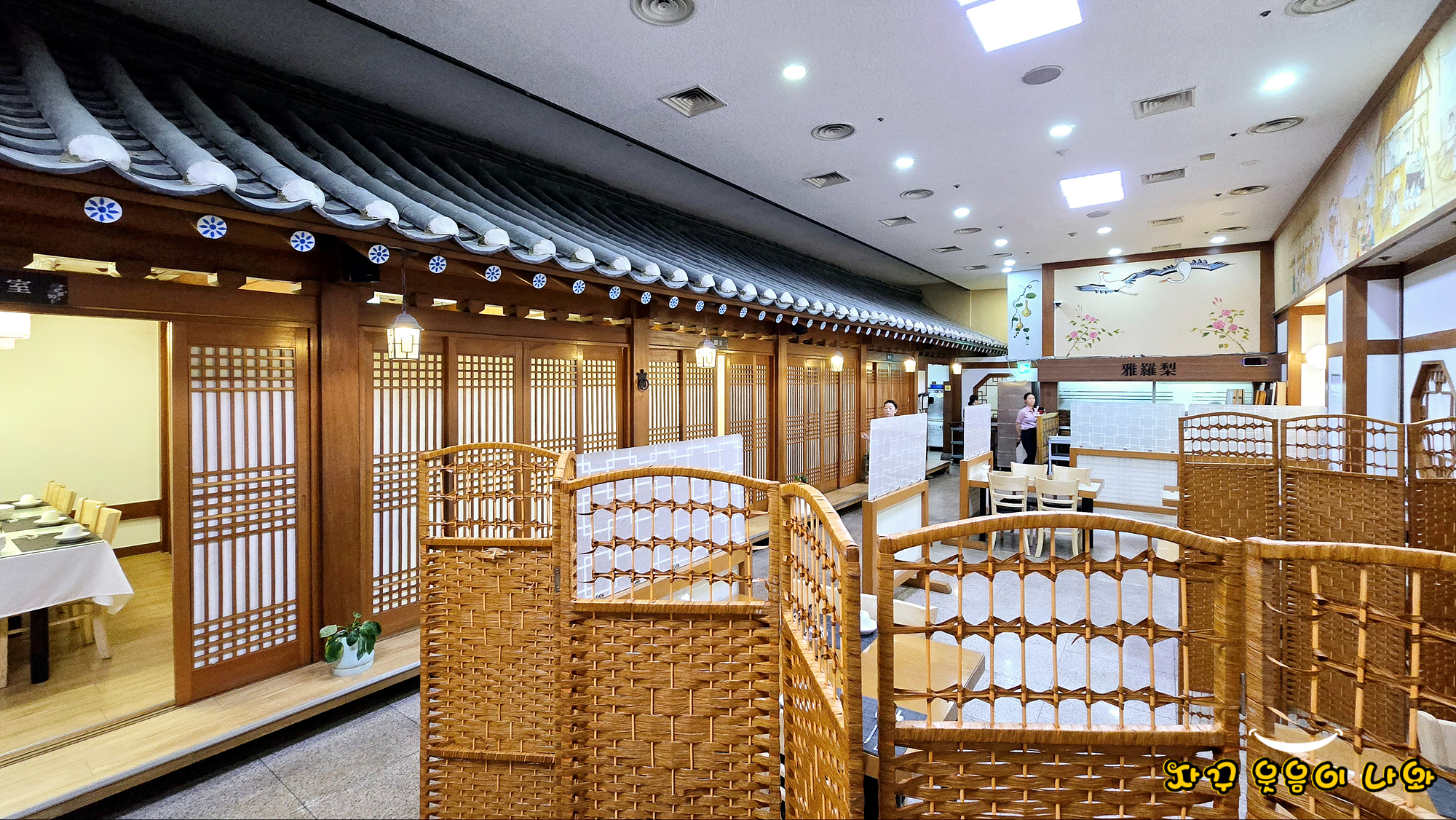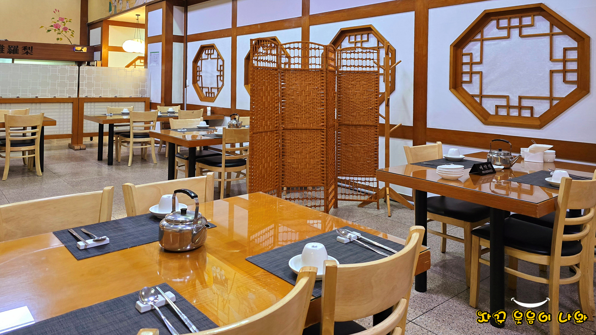 잠실 한정식 맛집 아라리 한정식 실내입니다. 한쪽에는 테이블룸이, 다른 한쪽에는 테이블세팅이 되어 있는데요. 예약이 늦어서 그런저 룸으로 배정 받지는 못했네요. 그래도 각각 테이블이 분리되어 있어 다른 방문객 방해받지 않고 편안하게 식사힐 수 있었습니다. 다음에 다시 방문하신다면 일찍 예약하시고 룸으로 배정해 달라 하세요.