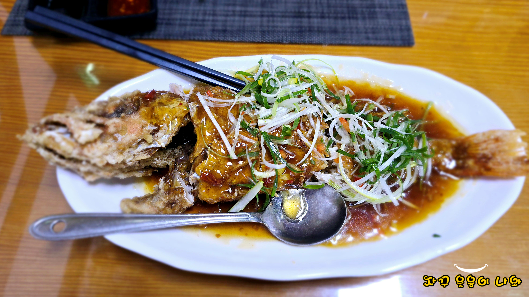 아라리 한정식 코스요리에서 우럭탕수를 먹다 보니 배가 슬슬 불러오기 시작합니다. 정말로 살이 통통한 우럭 한 마리가 튀겨 나왔네요.