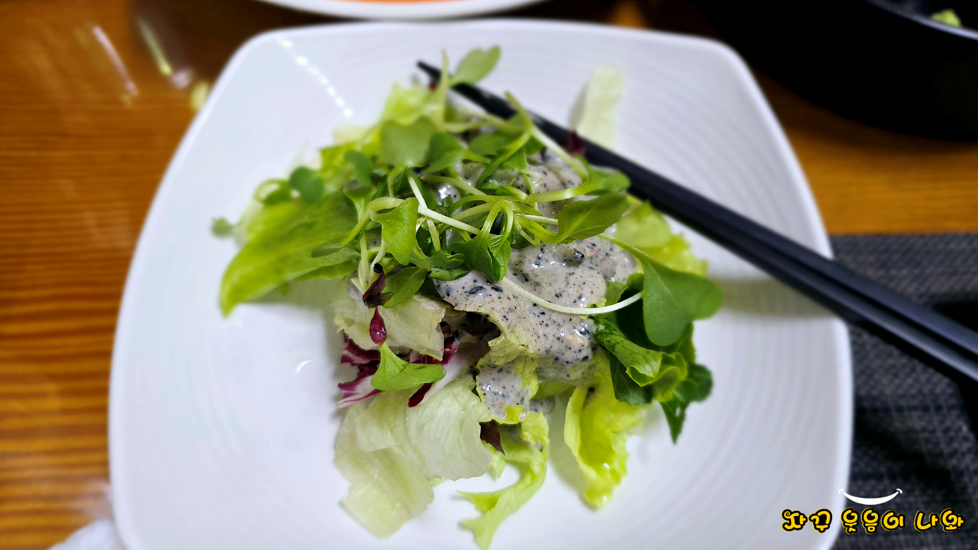 고소한 흑임자 소스가 올려진 야채 샐러드는 맛있게 잘 먹었고요. 한 번 다시 리필해서 먹었습니다.