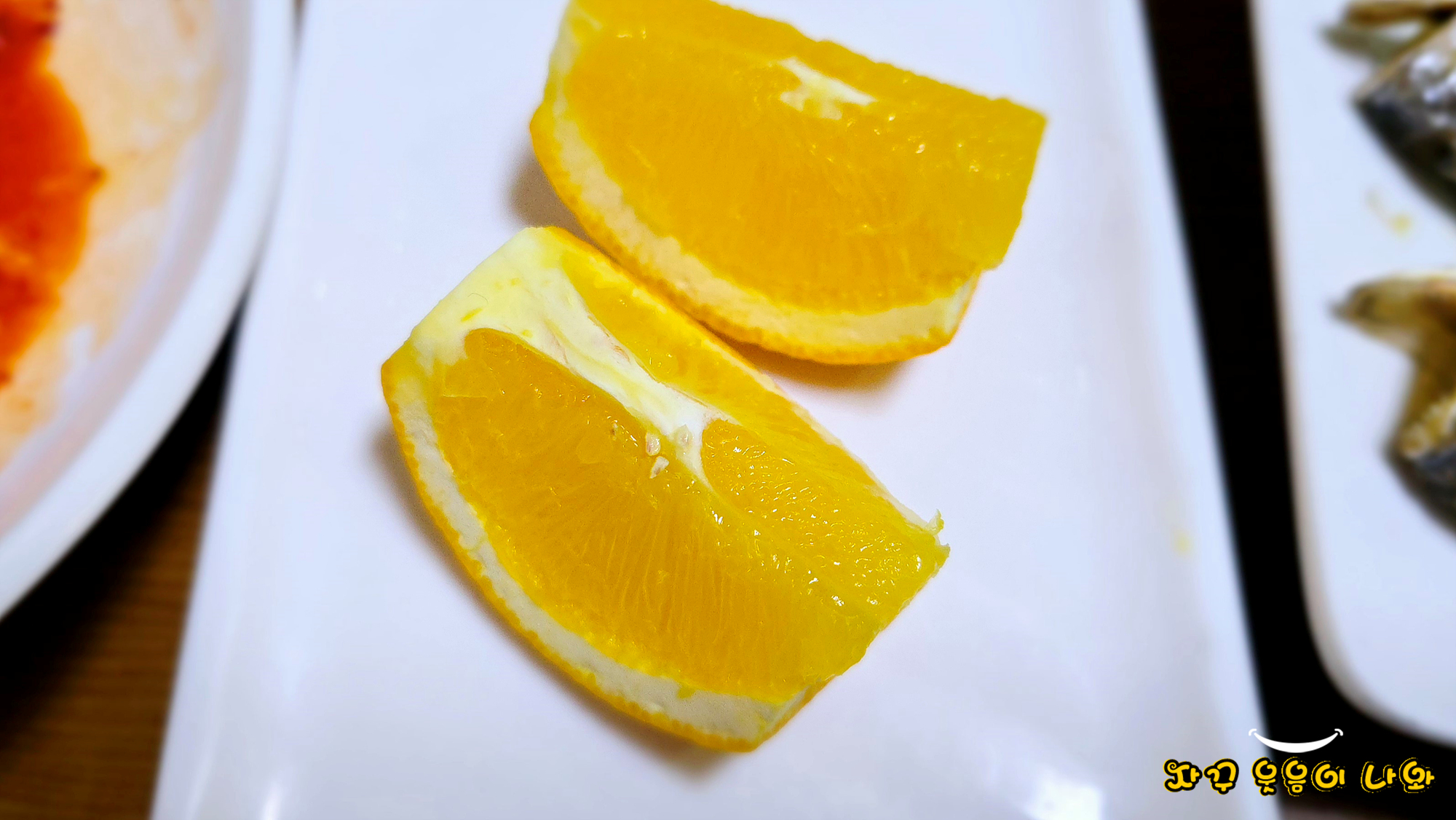 후식은 오랜지와 매실차가 나왔네요