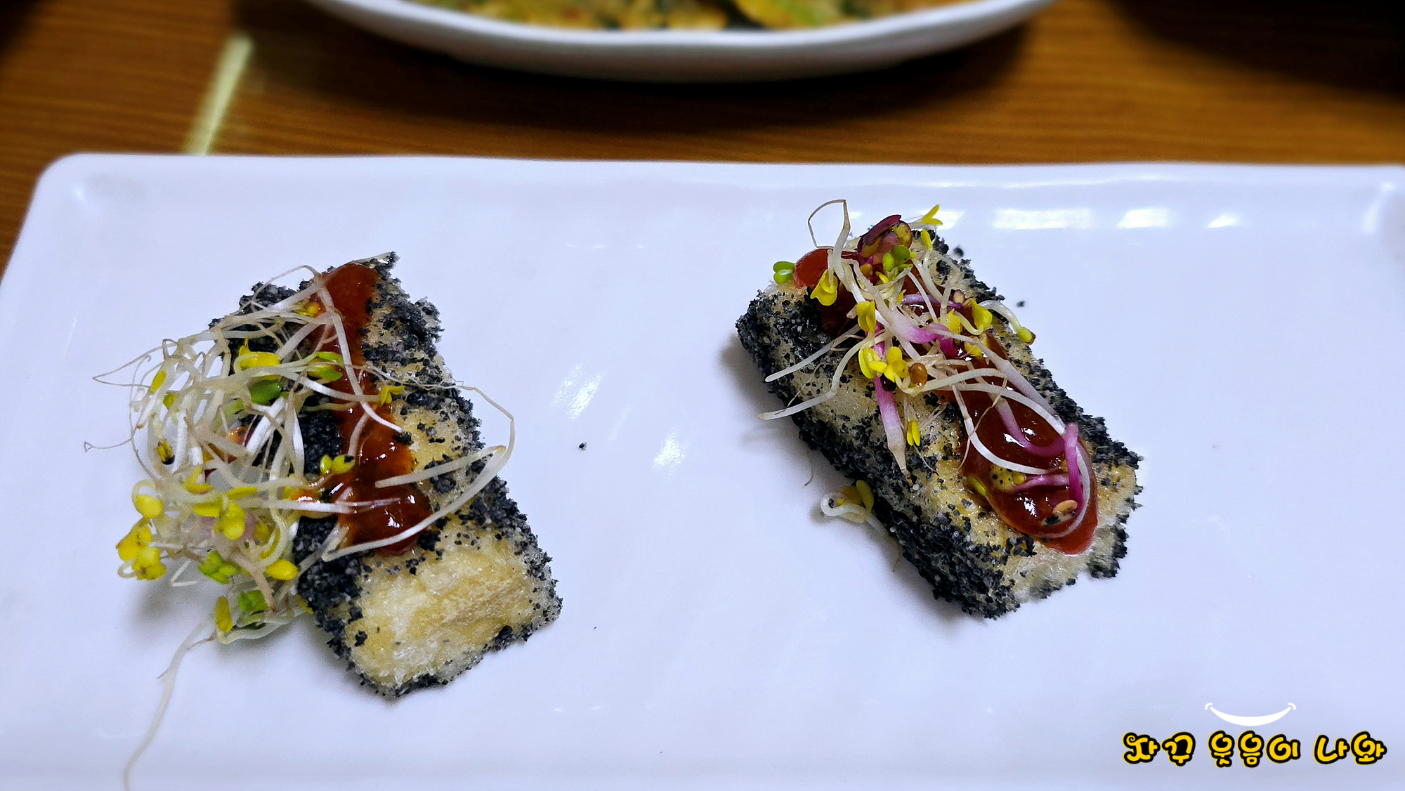새싹이 올려진 흑임자 두부는 따뜻하면서도 부드러운 식감이 참 좋았습니다.