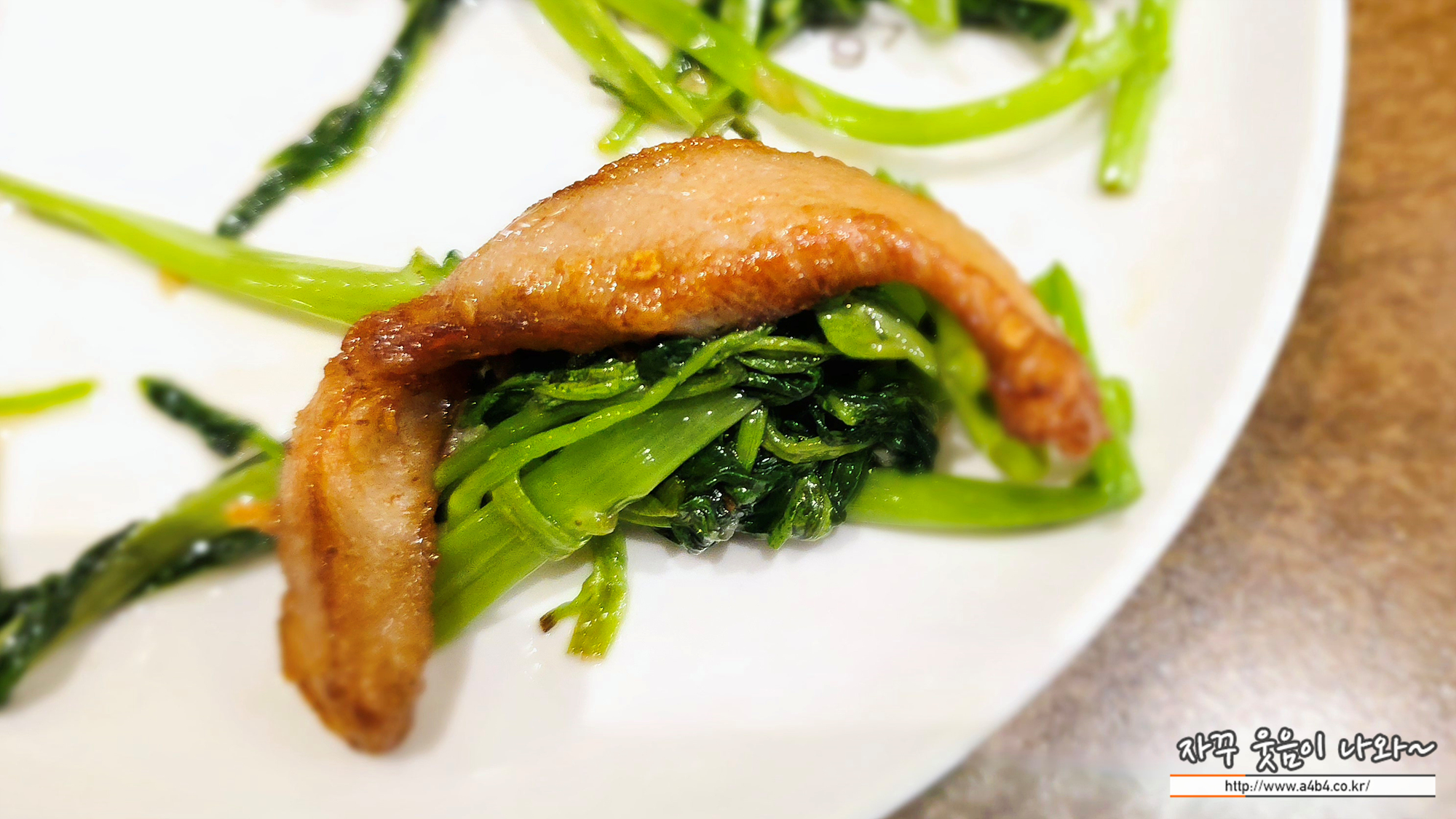 모닝글로리는 우리나라에서 공심채로 불리는 철분이나 칼슘 칼륨 식이섬유 셀레늄 베타카로틴 그리고 비타민 A•B•C•D등이 다양하게 들어 있는 음식중에 하나 입니다. 철분이 있어서 빈혈에 좋으며 고혈압에도 좋다고 하는데요. 공심채 볶음과 튀긴것 같은 바삭한 항정살과 같이 나오는 요리입니다.