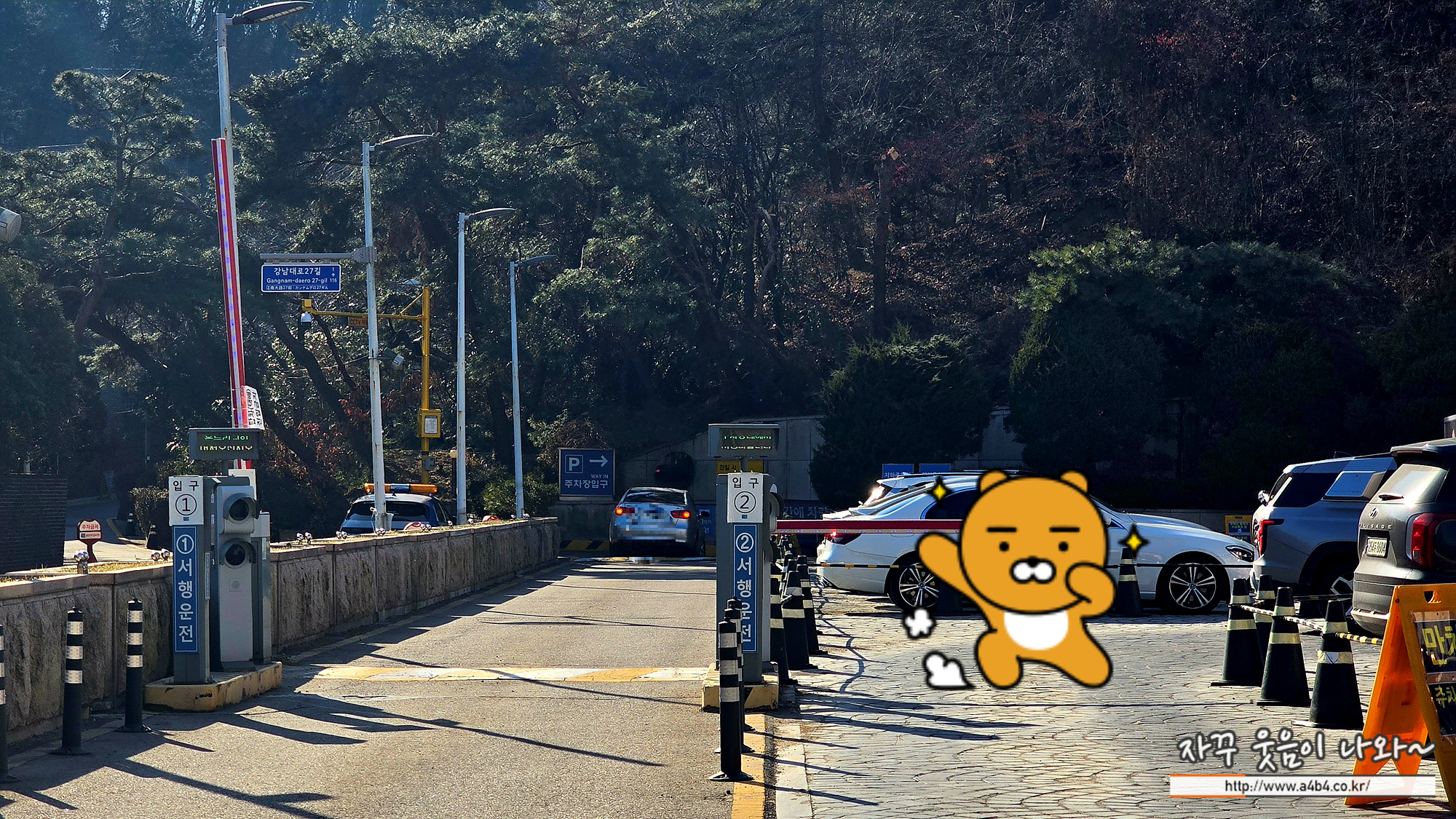 온누리교회 정문에서 좌회전 하시면 아래 사진과 같은 두 곳의 주차장 출입구 차단기를 보게 됩니다.