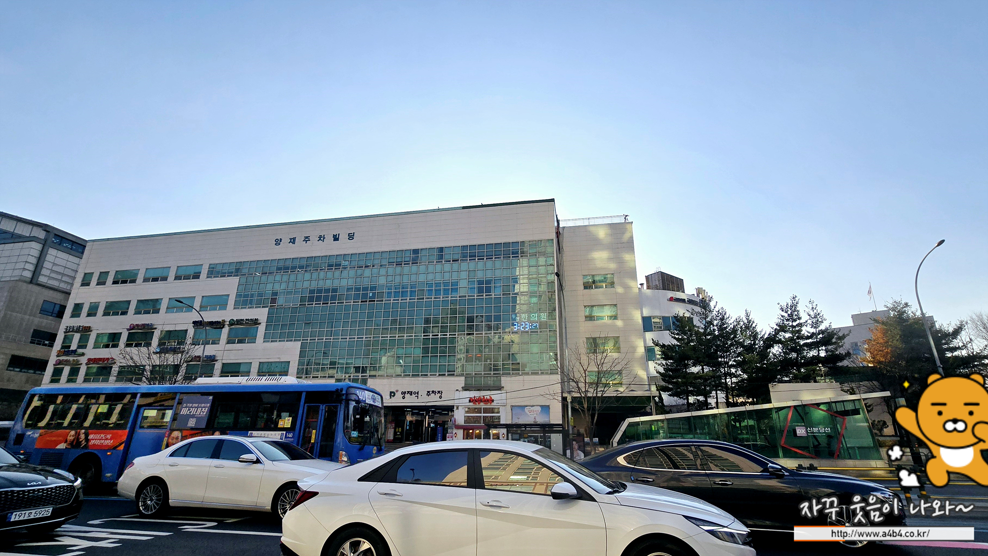 온누리교회 셔틀버스가 운행되는 양재역 10번 출구는 양재주차빌딩 앞 출구입니다. 아래 사진 라이언이 있는 곳 인데요. 대중교통으로 예식장을 방문하는 기준으로 양재 온누리교회 예식은 사실 좋은 위치와 환경은 전혀 아닙니다.