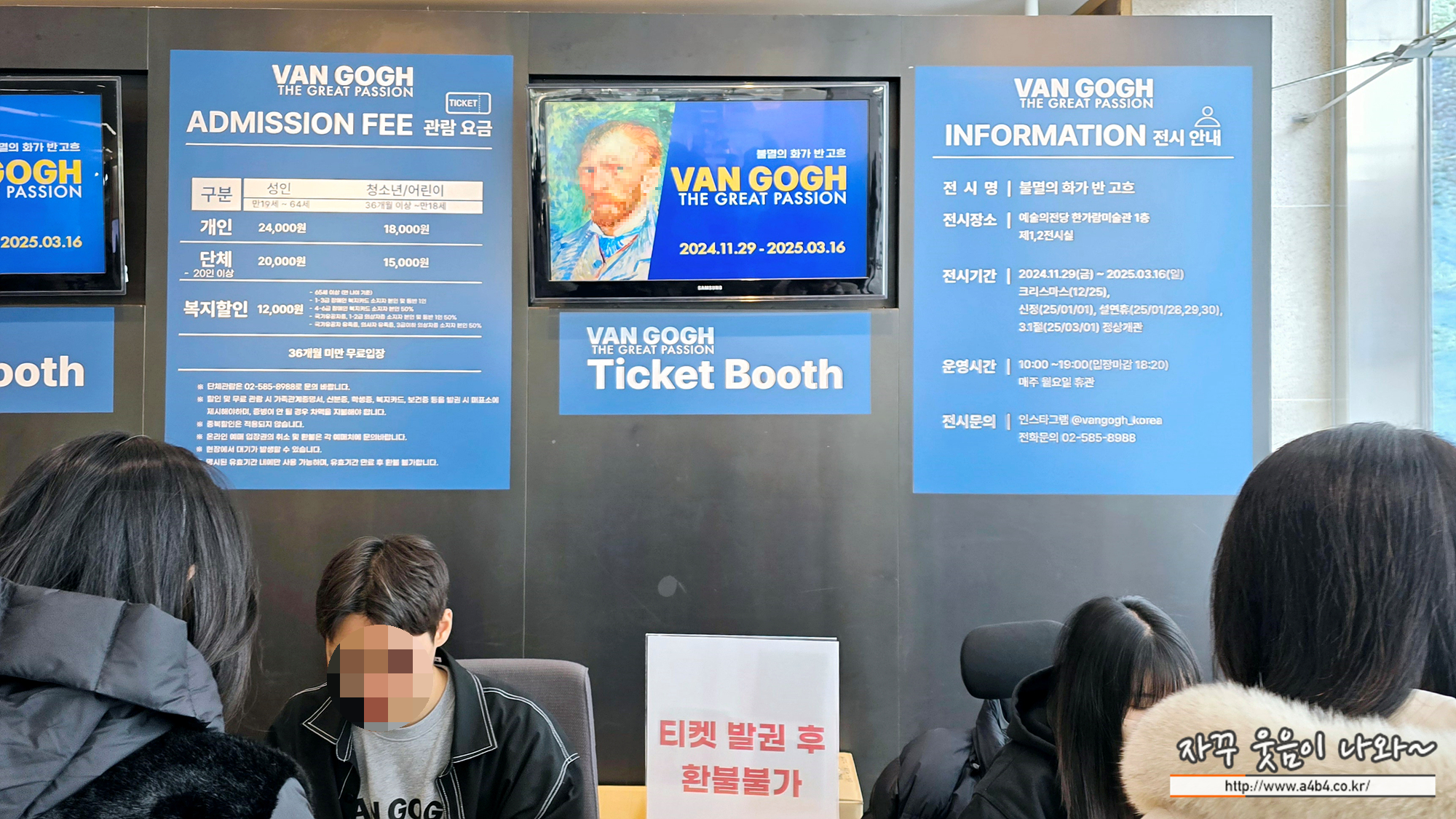 별도의 지류 초대권이 없다면, 현장구매나 예약모두 이번 빈센트 반 고흐 전시회가 열리고 있는 한가람미술관 1층에서 티켓구매 또는 발권하셔야 합니다. 티켓 발권 대기에는 약 10분정도 걸렸습니다.