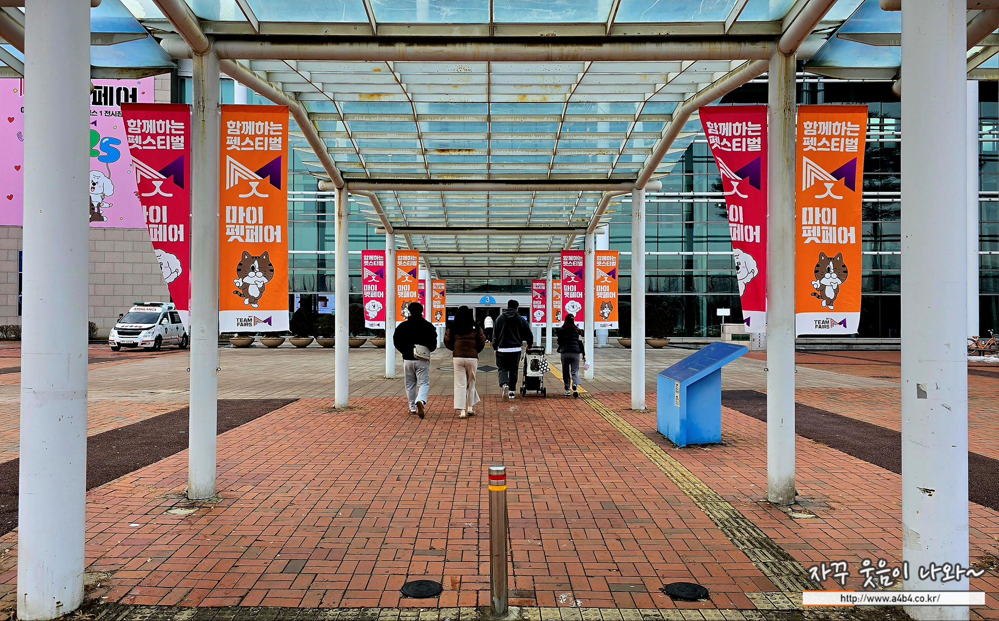 일산 킨텍스 제1전시장 3홀 근처 주차공간에 주차하고 강아지와 함께 펫패어 일산 행사가 열리고 있는 3홀로 입장합니다.