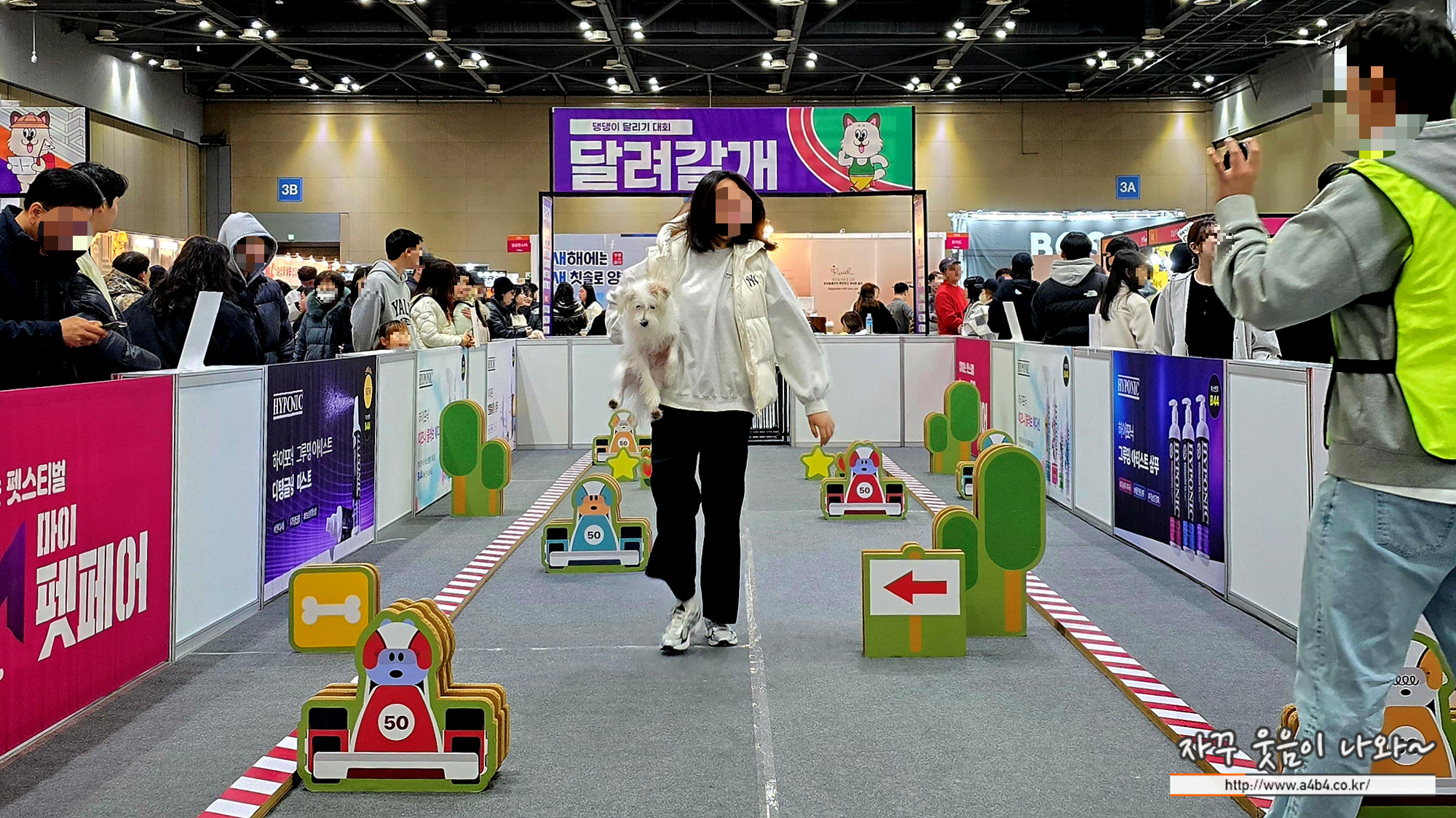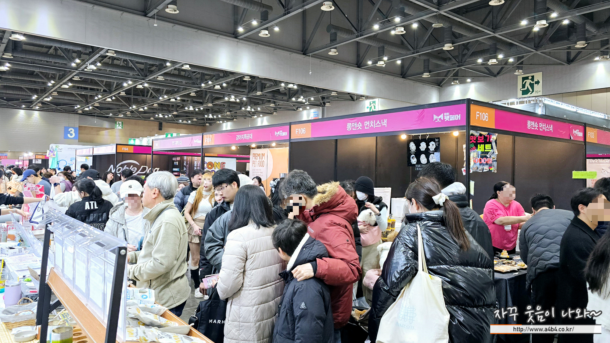이번 일산마이펫페어 방문객이 많아서 그런지 행사장은 매우 혼잡했습니다. 좁은 통로에 개모차와 사람들이 뒤섞이다 보니 관람객 편의성은 영 꽝이었네요. 더구나 이번 마이펫페어 행사는 일산 킨텍스 제1전시장 3홀 공간의 2/3정도만 사용하고 있어 조금 더 여유있는 공간배치가 가능해 보였네요.