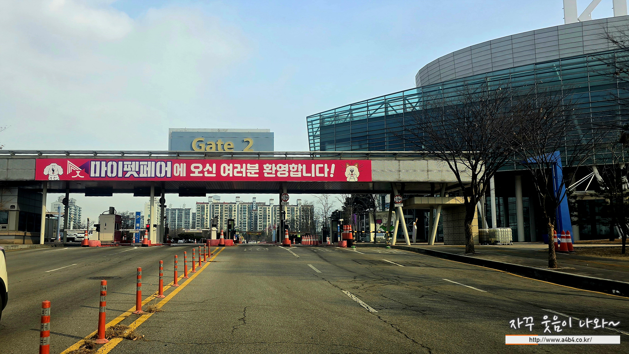 해당 전시장에서 가장 가까운 킨텍스 주차장은 게이트2입니다. 진입하셔서 왼쪽에는 주차장이, 오른쪽에는 킨텍스 행사장이 위치해 있습니다. 펫페어가 열리는 코엑스몰이나 세텍에 비해 주차장 규모나 주차공간은 상대적으로 매우 여유있습니다. 특히 세텍의 악명? 높은 주차장에 비하면 일산 킨텍스 주차장은 천국...