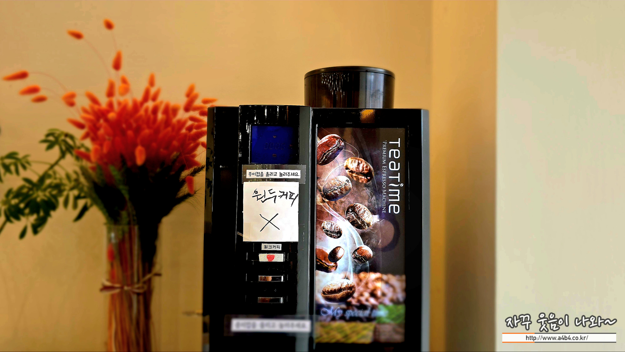 식사 후 음료는 자판기커피입니다. 원두커피 아님... 그렇다고 맥심도 아님...