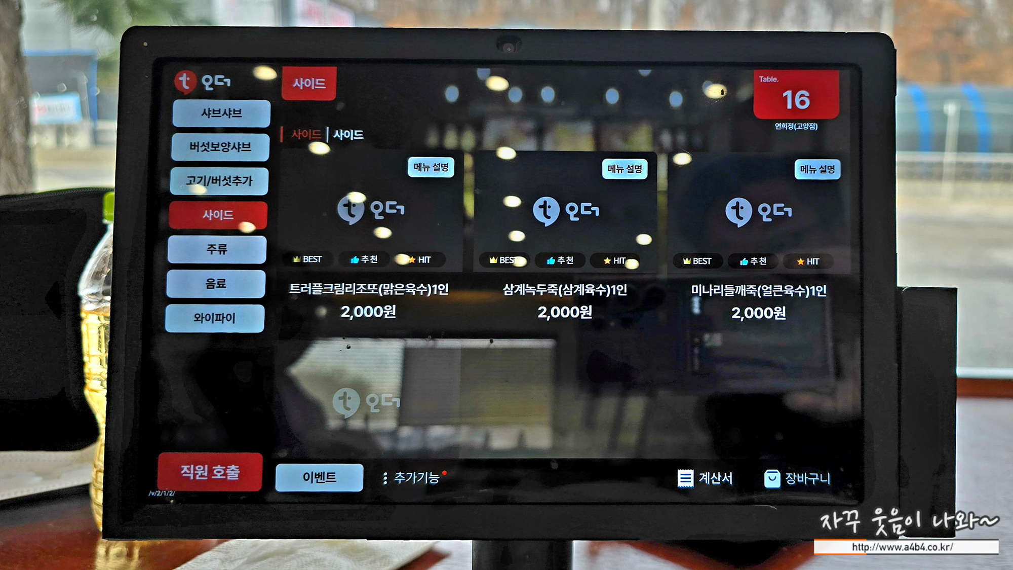 주문은 테이블에 세팅된 테블릿으로 주문하시면 됩니니다. (이곳도 T오더...). 결제는 식사 완료 후 카운터에서 결제하시면 됩니다.
