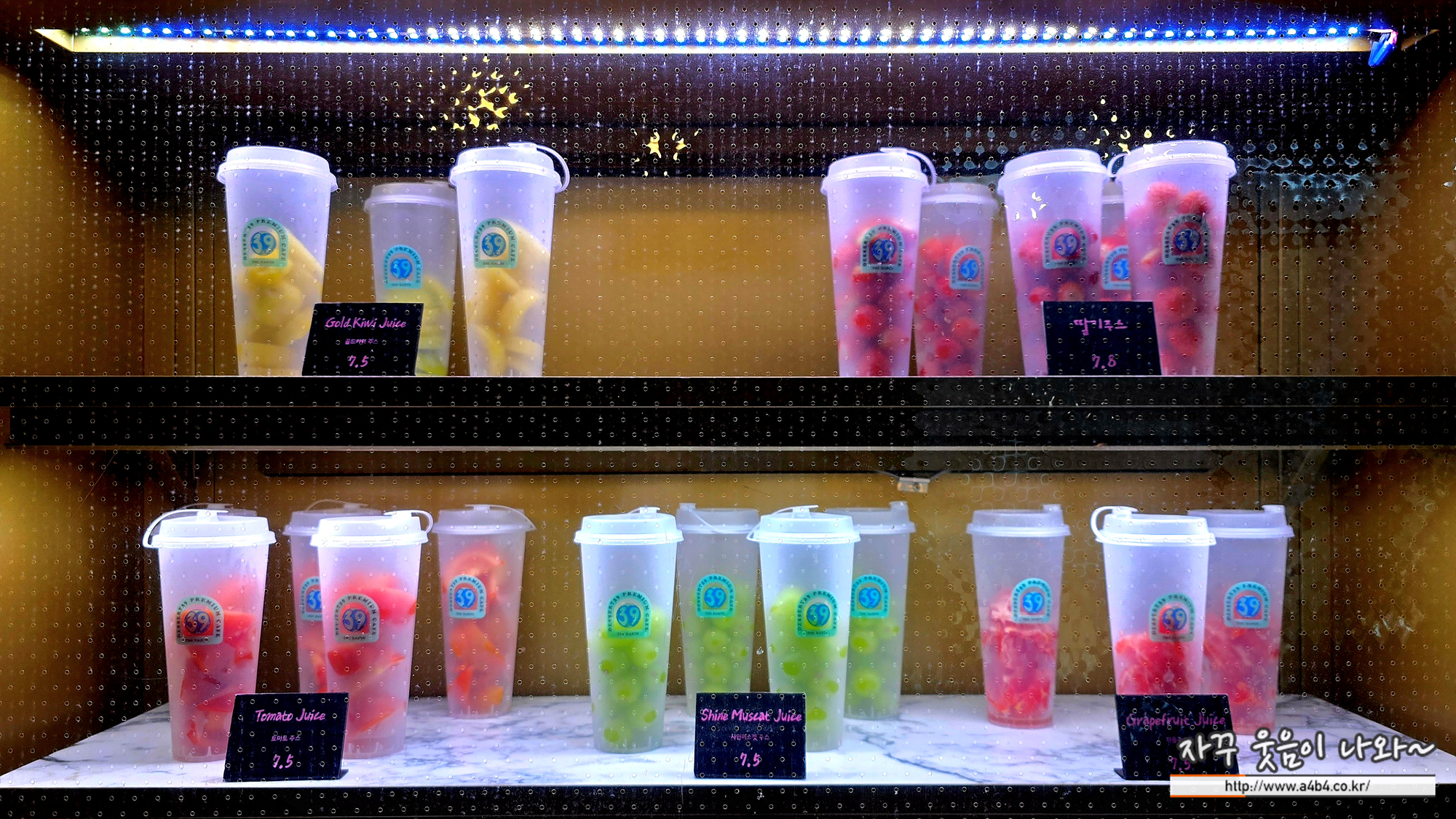 디저트39 디어스 율동공원점 음료는 리유저블 컵에 판매되는 생과일 주스 (골든키위, 토마토, 딸기, 샤인머스킷...)가 가장 좋은 자리에서 판매되고 있는데요. 가격은 7.9천원...