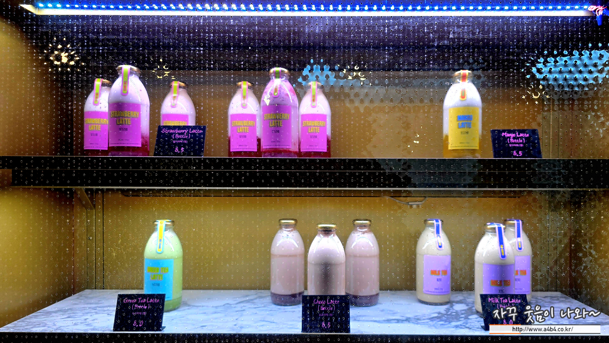 딸기라떼, 망고라떼, 초코라떼, 밀크티라떼 등 병음료 Latte 도 있는데요. 가격은 8,500원. 최근 대형 카페 음료나 빵 가격 인플레가 심하다고 하지만 가격 후덜덜 하네요.