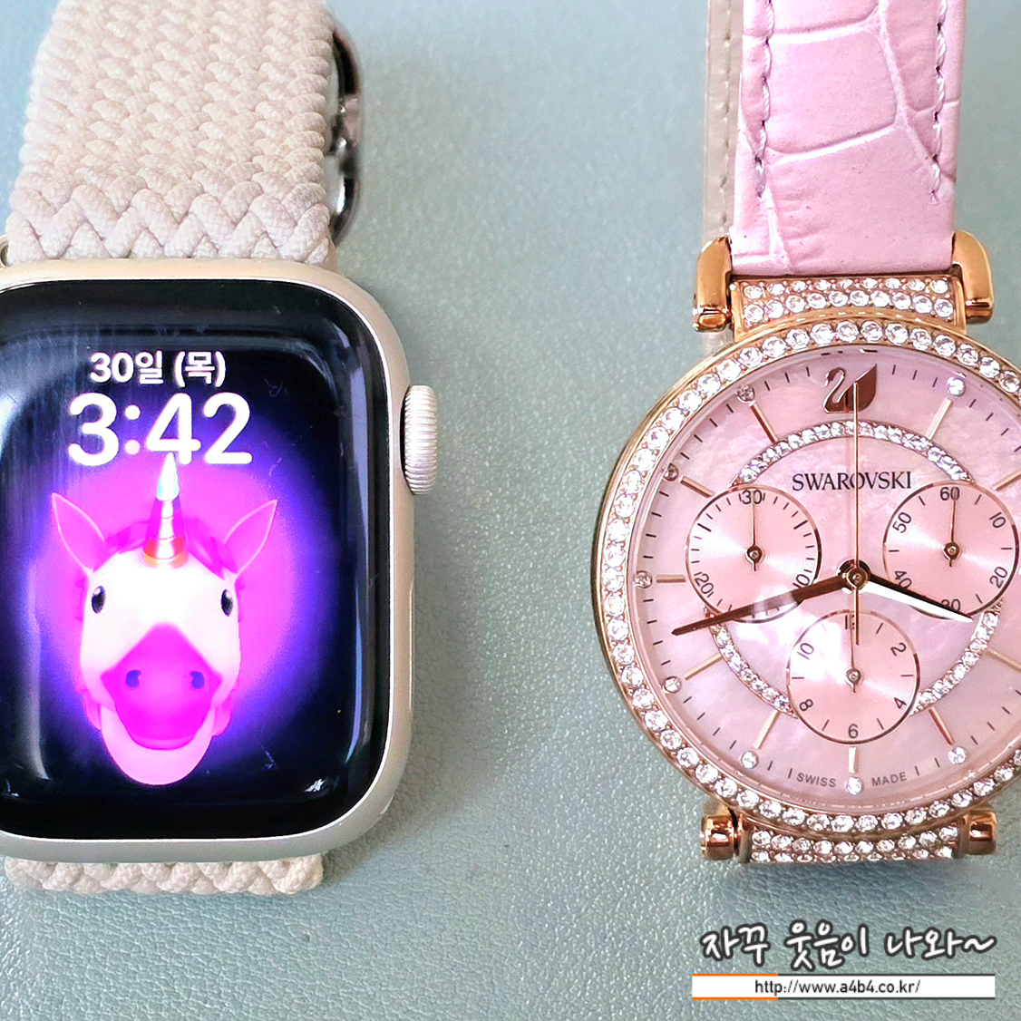 | 애플워치와 스와로브스키 여성시계 비교