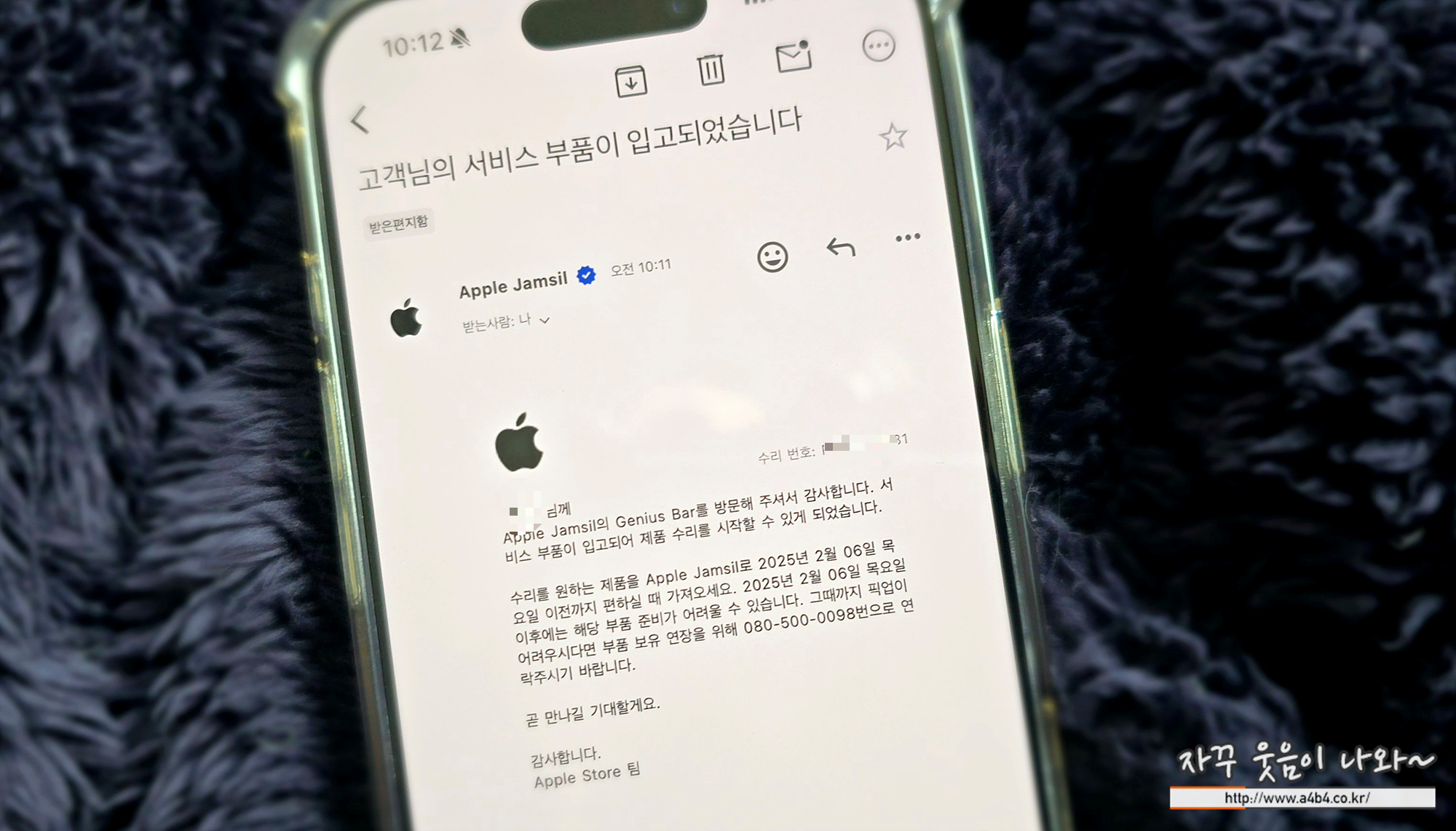아이폰 수리에는 3시간 정도 소요되고 등록된 이메일로 안내해 준다고 한다. (이것도 문자알림 안된다고 함)
