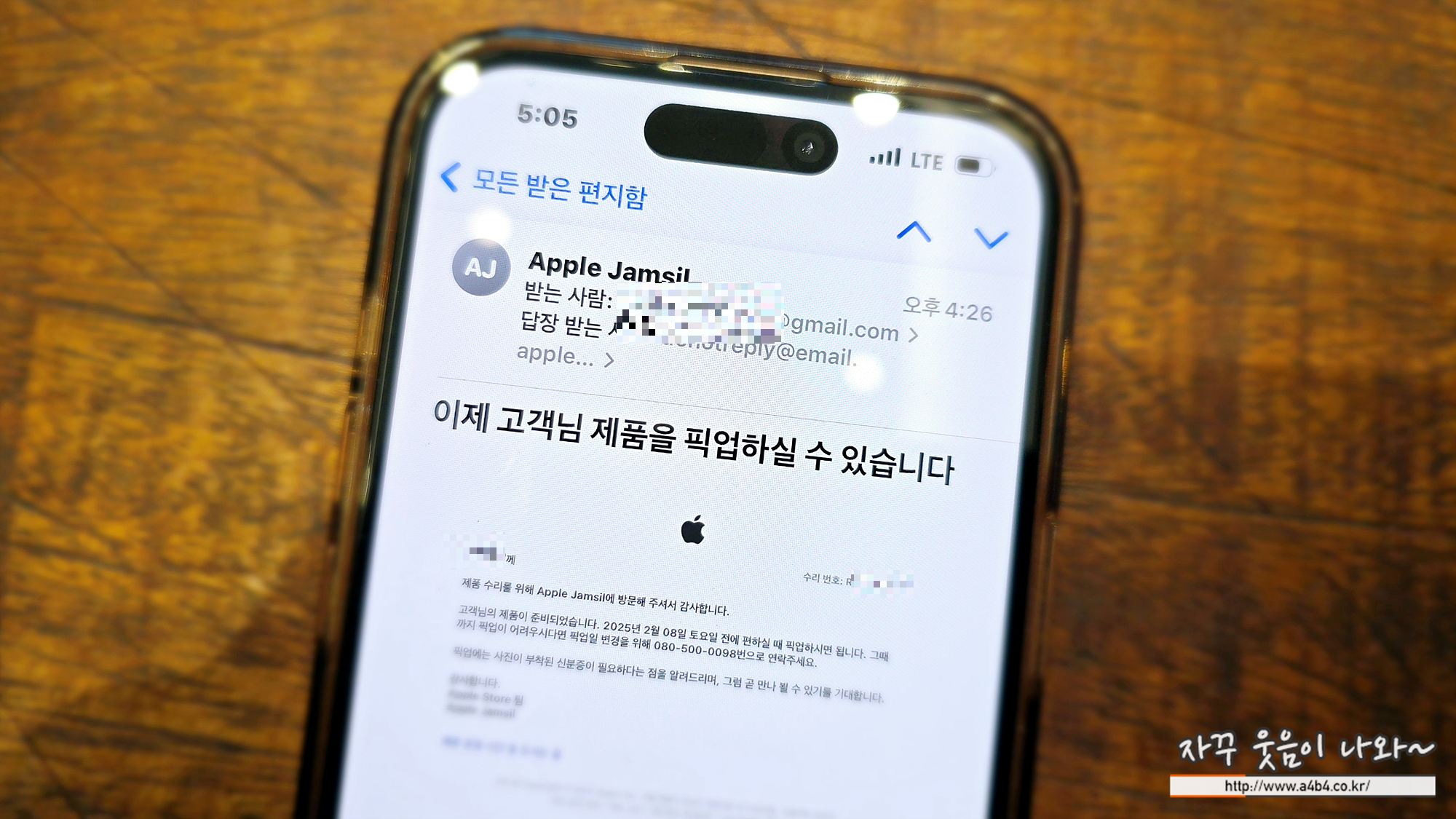 아이폰 16 프로 수리위해 14시 27분에 태블릿에 사인 했는데, 수리 완료 메일은 약속한 3시간에서 1시간 정도 빠른 16시 26분에 수신, 바로 수령하고 다 다 다 다~